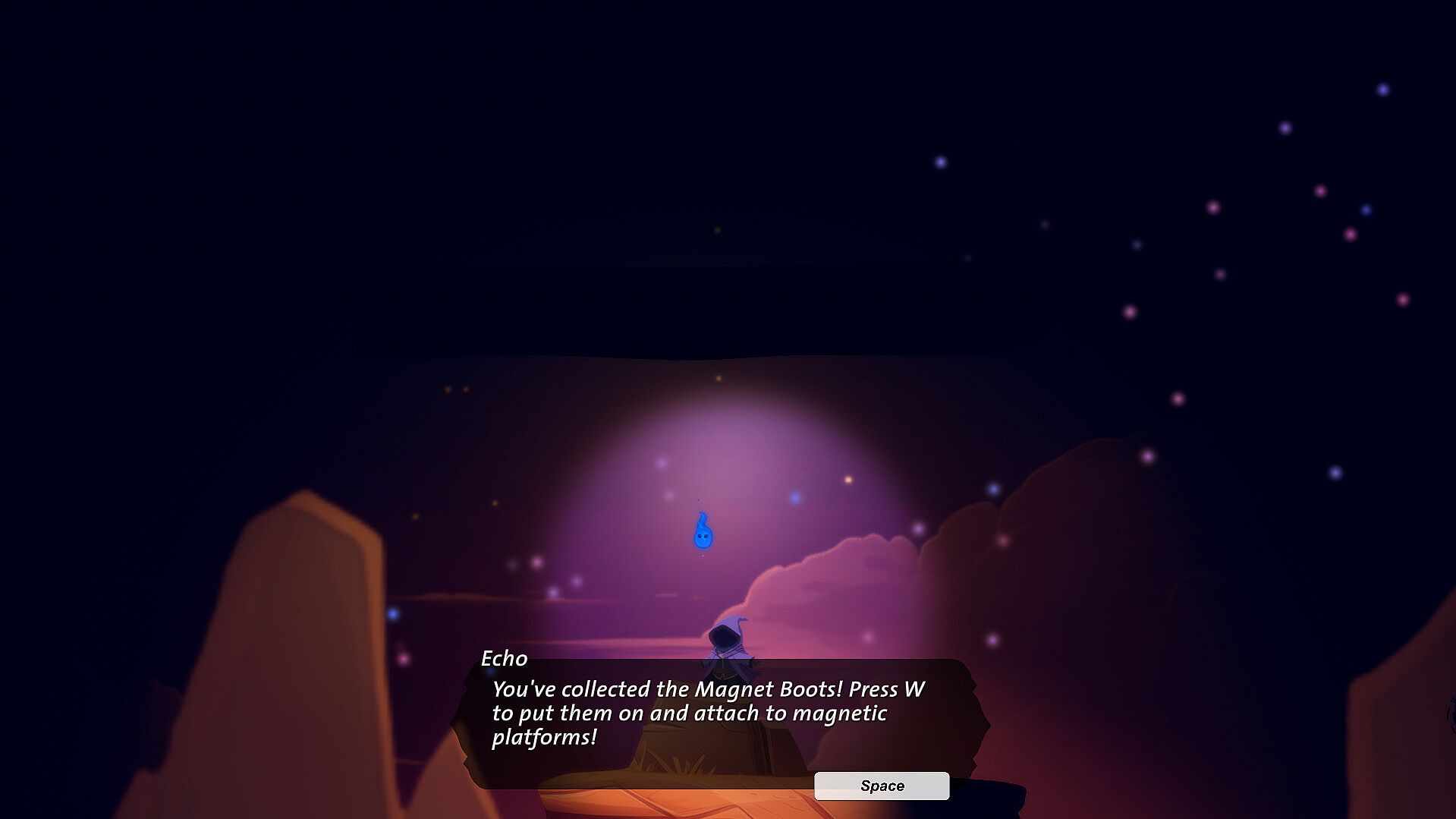 • Gravity Grasps: An enchanted pair of boots that flip the wizard's gravity, giving him freedom on the undersides of platforms.