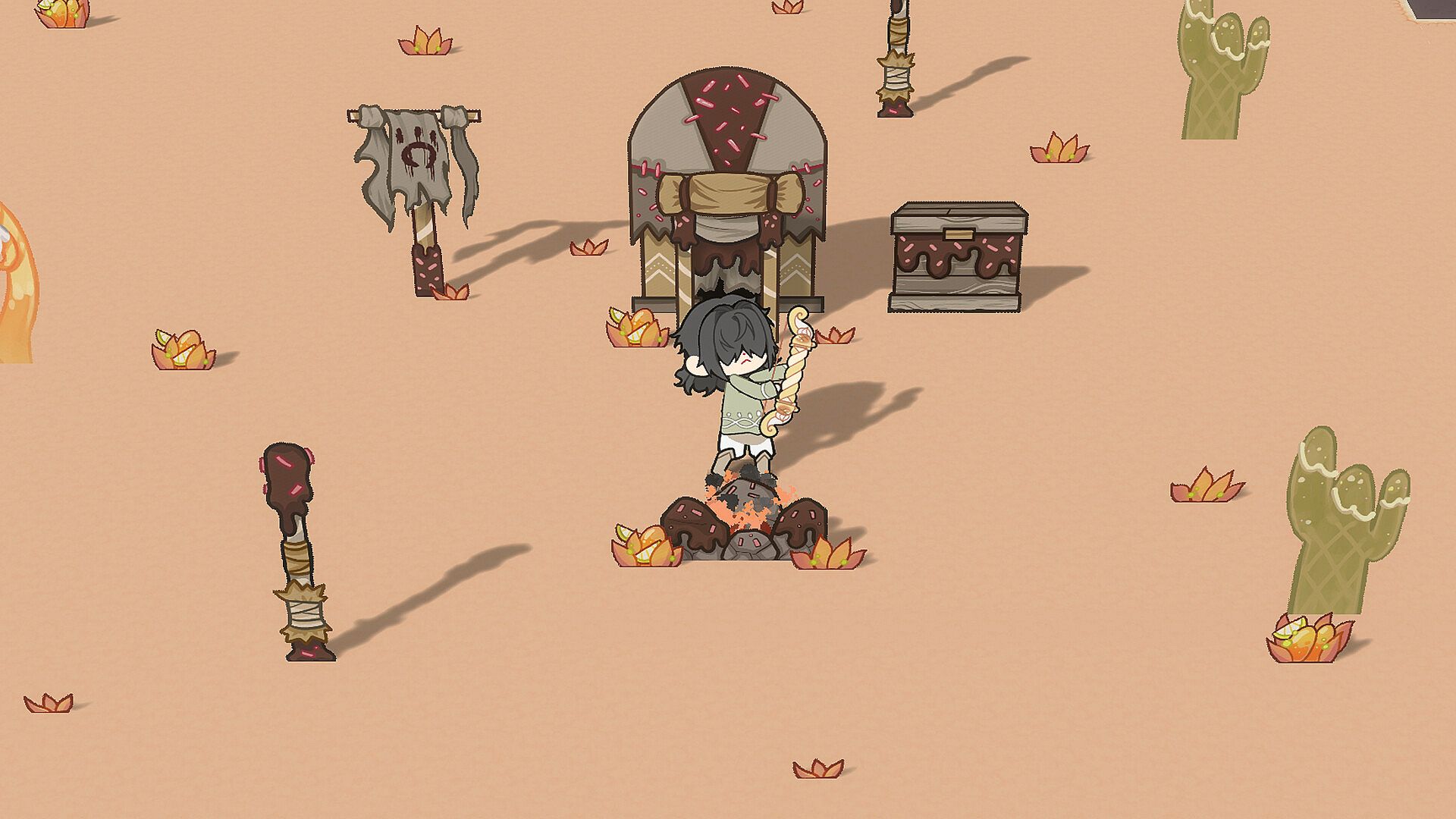 Heal and buff up through farming and cooking! Restore your health and enhance your abilities by preparing delicious food and brewing potent potions. Higher-quality dishes grant stronger buffs and maximizing Health, so cultivate fruit farms, manage farm animals, and fish to gather the freshest ingredients!
