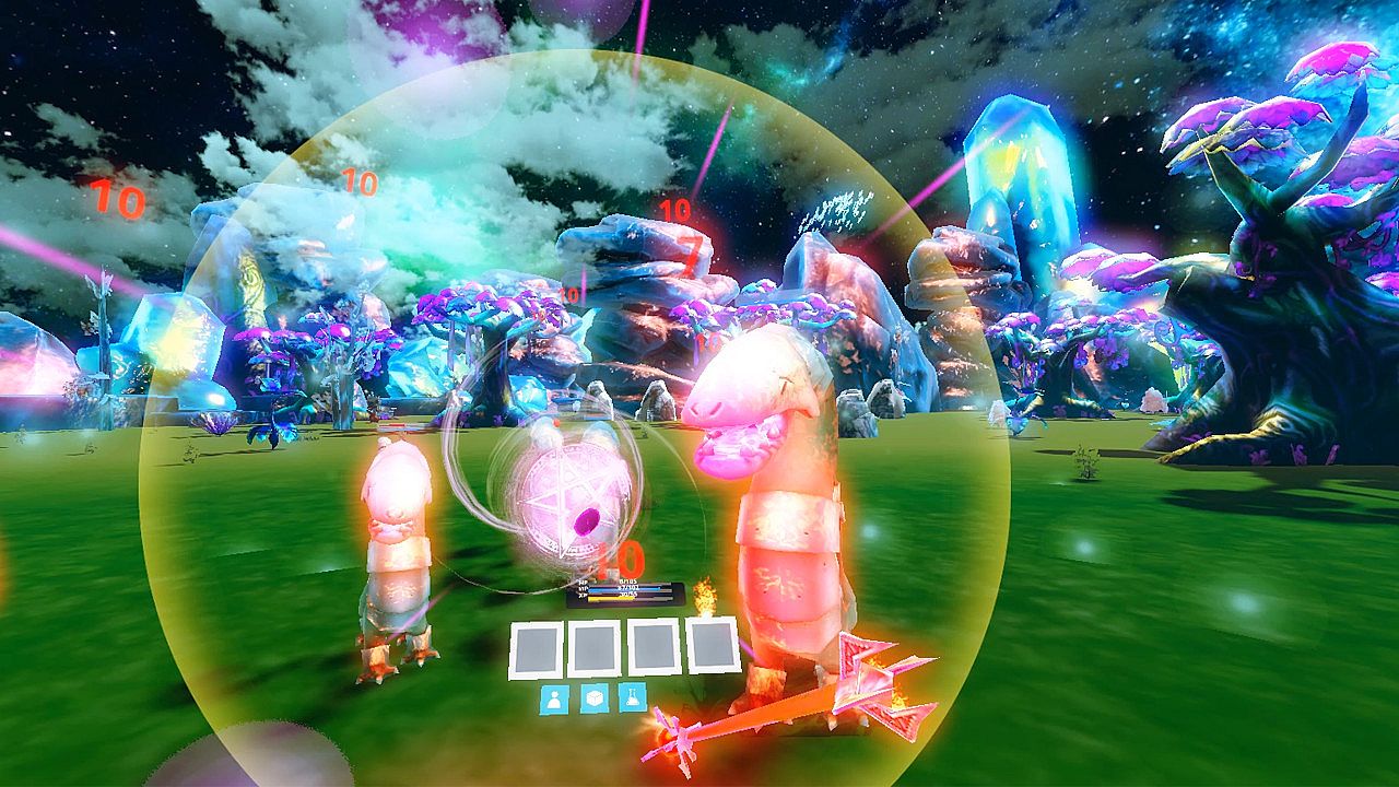 Over 100 magical, melee and ranged weapons. Combo procedurally enchanted weapons with your spells, and skills. For example, use an ice enchanted magic sword that freezes your enemies while triggering your ice thorns spell ability.
