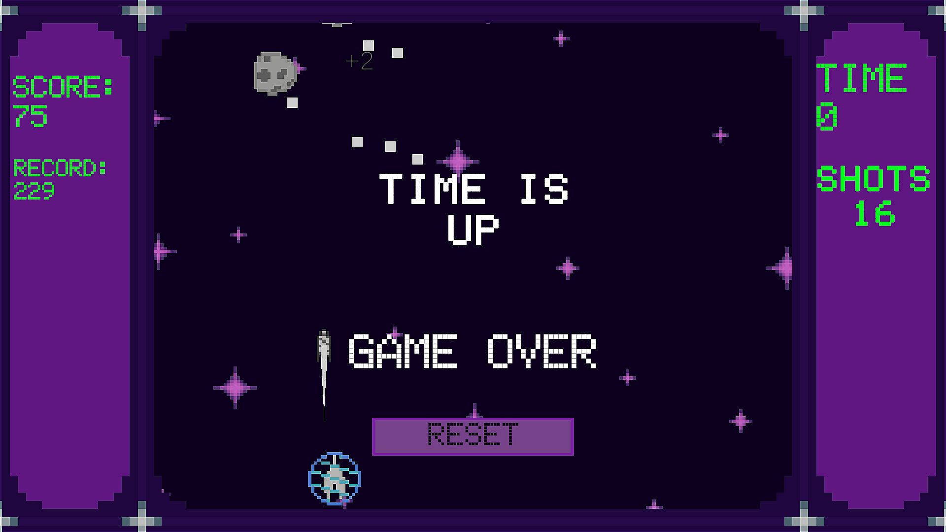 Among the chaos, special time-shaped asteroids appear, granting you extra time to keep pushing forward. Stay sharp, manage your shots wisely, and survive as long as possible before time runs out and your ship meets its fate.
