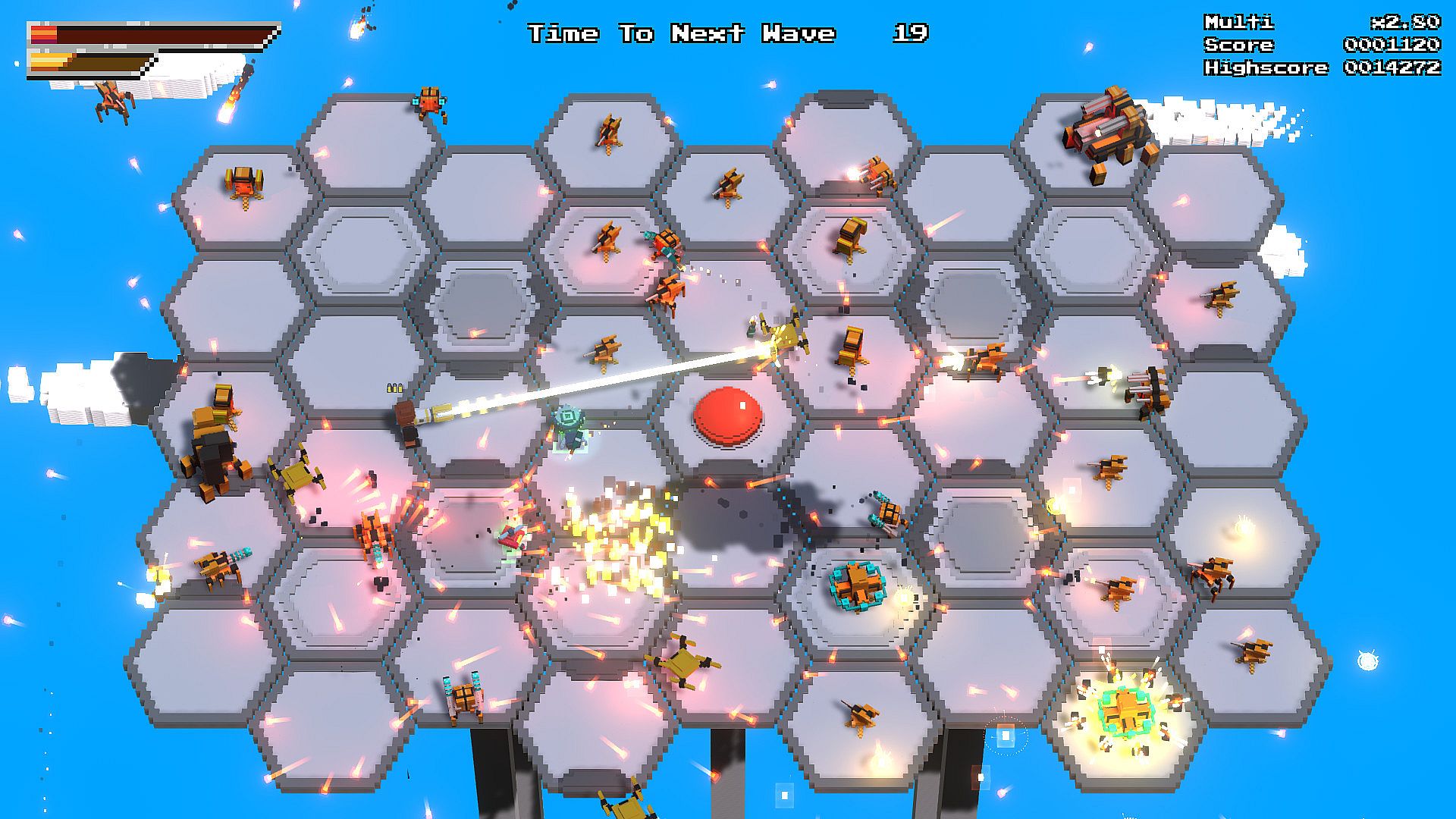 Battle relentless waves of robotic enemies in this action indie arcade shooter on PC. Grab randomly dropping weapons to diversify your arsenal and rack up multipliers for higher scores. Collect powerups from slain foes to stack temporary boosts, adapting on the fly across four maps with hazards like hex platforms, conveyor lasers, and encroaching darkness. Climb global online leaderboards by cranking up enemy difficulty and unlocking over 40 unique weapons. Face varied robot opponents while chasing personal bests and smashing friends' records. Hardcore arcade fans thrive on the endless survival grind and score-chasing depth.