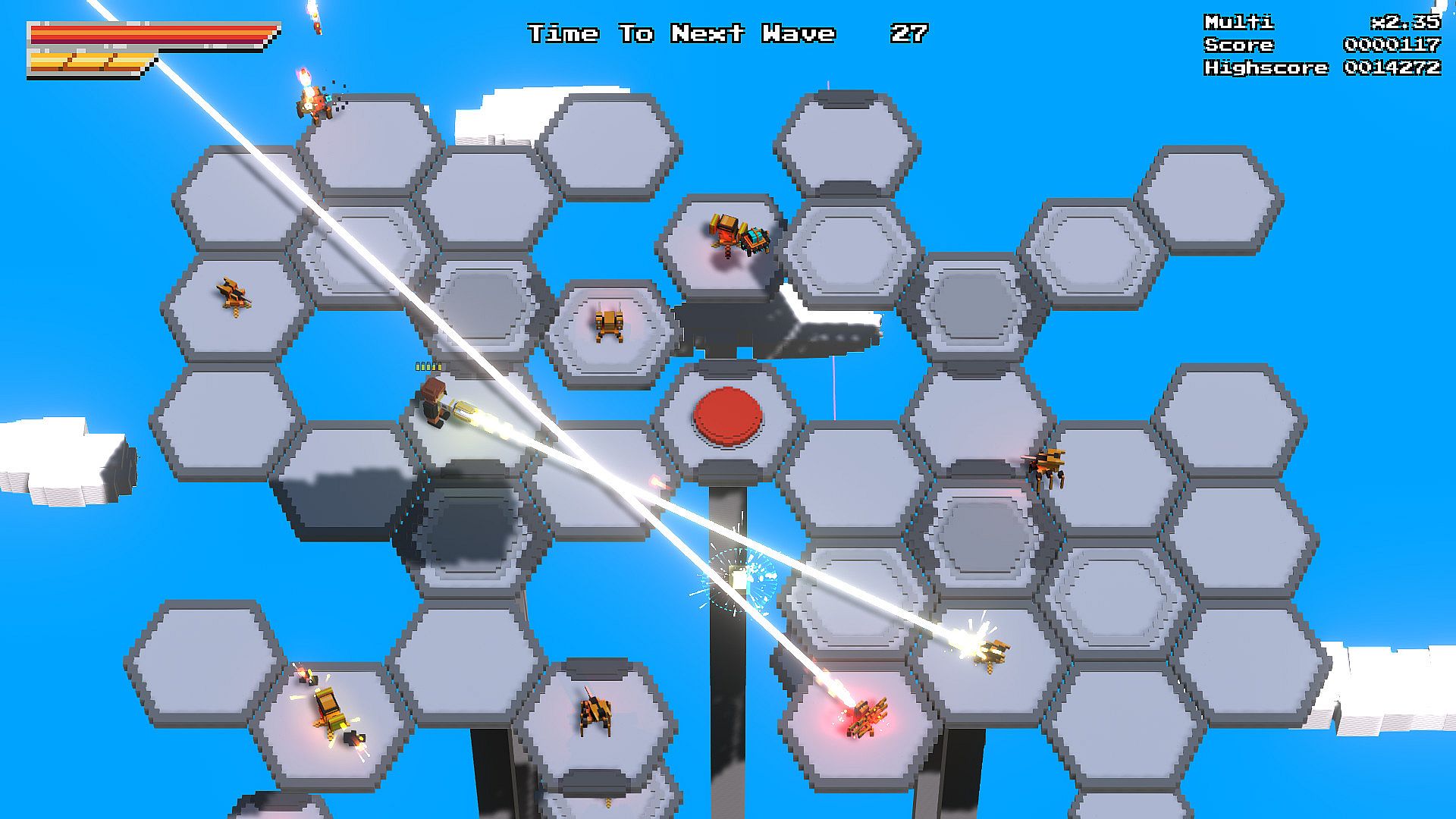 The game currently features 4 maps, each with their own unique mechanics and features. Try not to fall from the sky on Hexes, watch out you don't get pushed into lasers on Conveyor, and keep the darkness at bay on Dark Shaft!