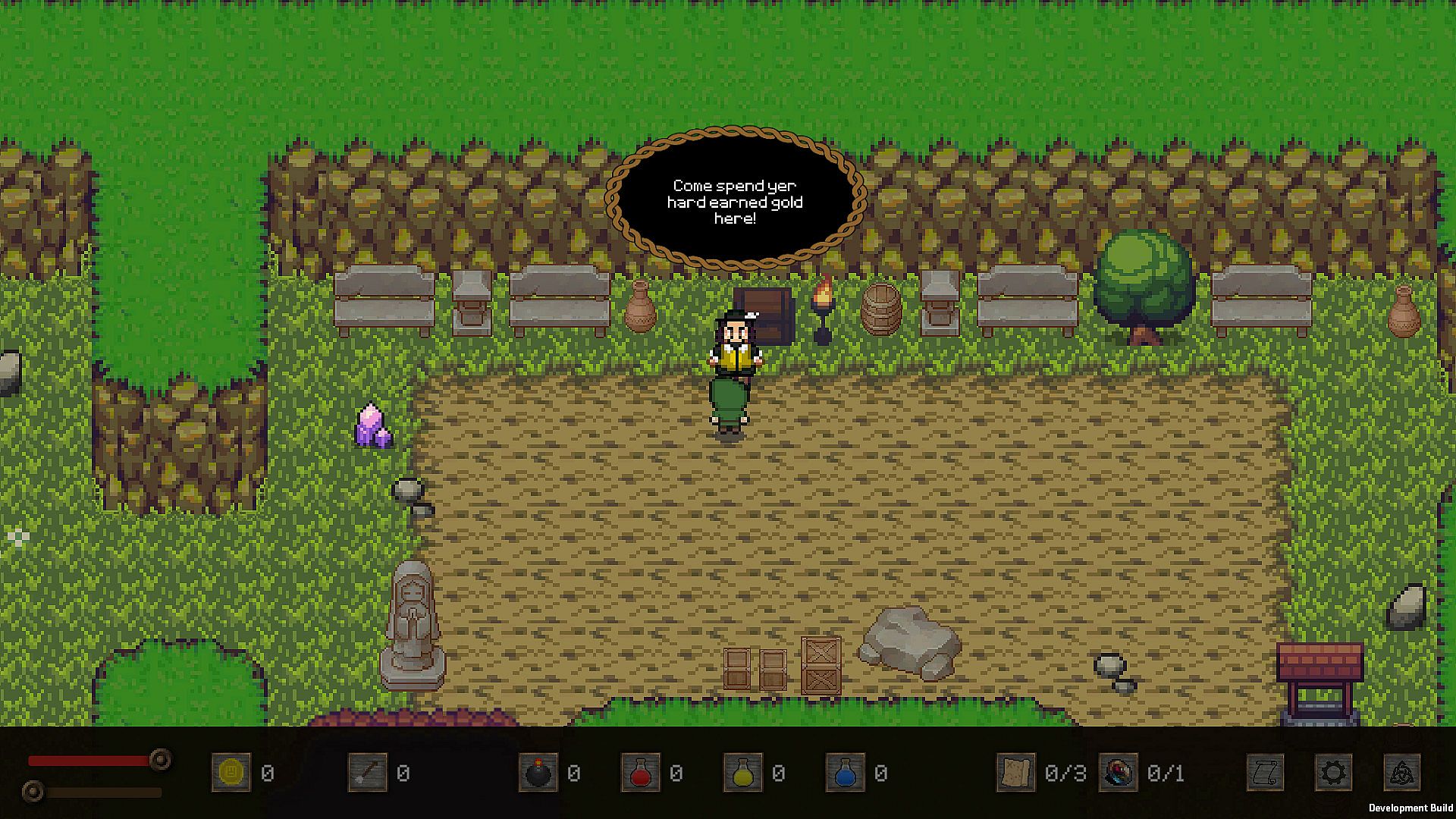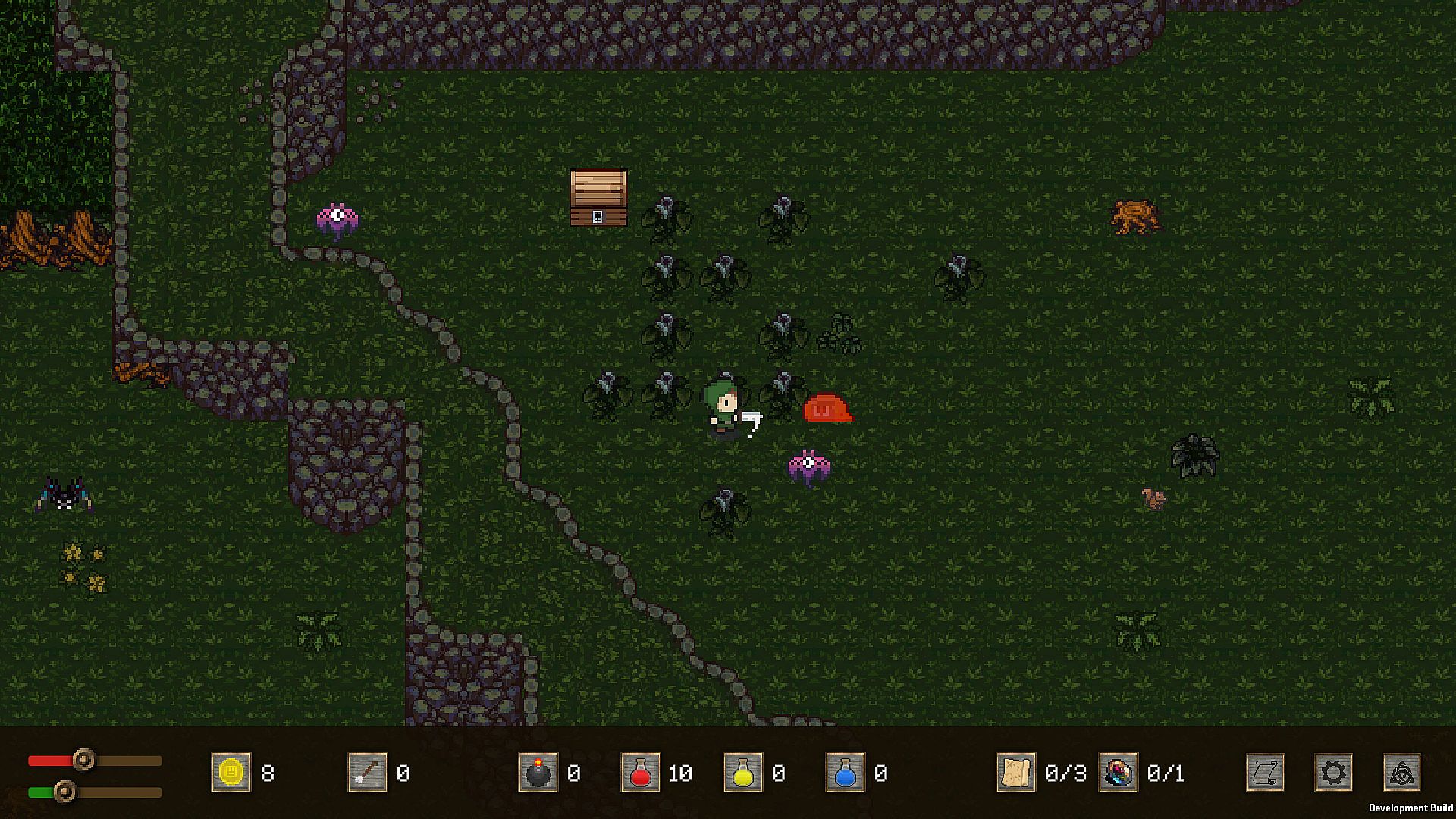 A forsaken rogue seeks freedom by retrieving seven legendary stones across a hostile land filled with deadly underground passages, unforgiving forests, and gold-rich caves. Players roam an open world without restrictions, tackling hidden dungeons in any order while using teleportation crystals for fast travel and recovery in places like the vast Everglade Forest. Stock up on potions, bombs, and arrows to battle roaming enemies, build power for dungeon entry, and face escalating threats. Defeat powerful bosses called Guardians, whose strength rises as the player grows, and spend gold on supplies, maps, items, or stat upgrades like health after each stone retrieval. The core loop demands slaying foes for power and resources, resetting the land with tougher enemies upon success. This indie action RPG suits explorers who enjoy casual adventure pacing with strategic preparation and boss combat on PC.