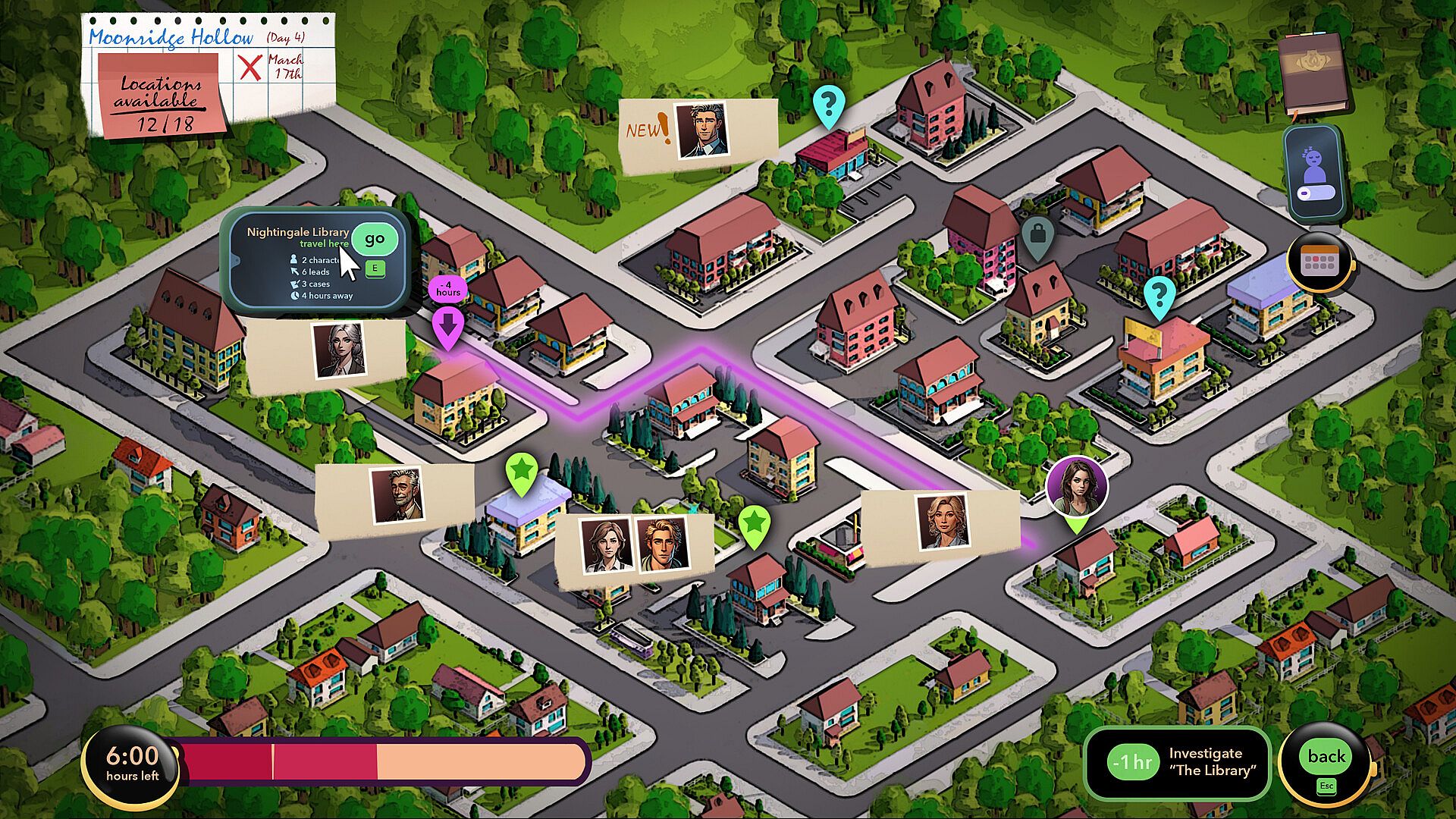 Moonridge Hollow is full of intriguing characters each with their own motives, agendas, and secrets. Are they telling the truth? Are they lying? Look for contradictions between their statements and the evidence you gathered to break their composure and get to the truth. Trust no one in your search for your missing sister!