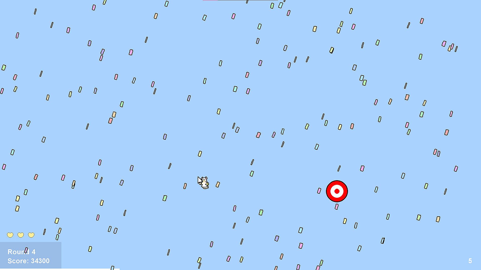 In this game, you move using just the mouse to avoid any and all projectiles that come your way. After a few seconds of surviving the bullet pattern, a target will appear. Either wait out the attack timer or click the target to advance to a new, randomly selected bullet pattern!