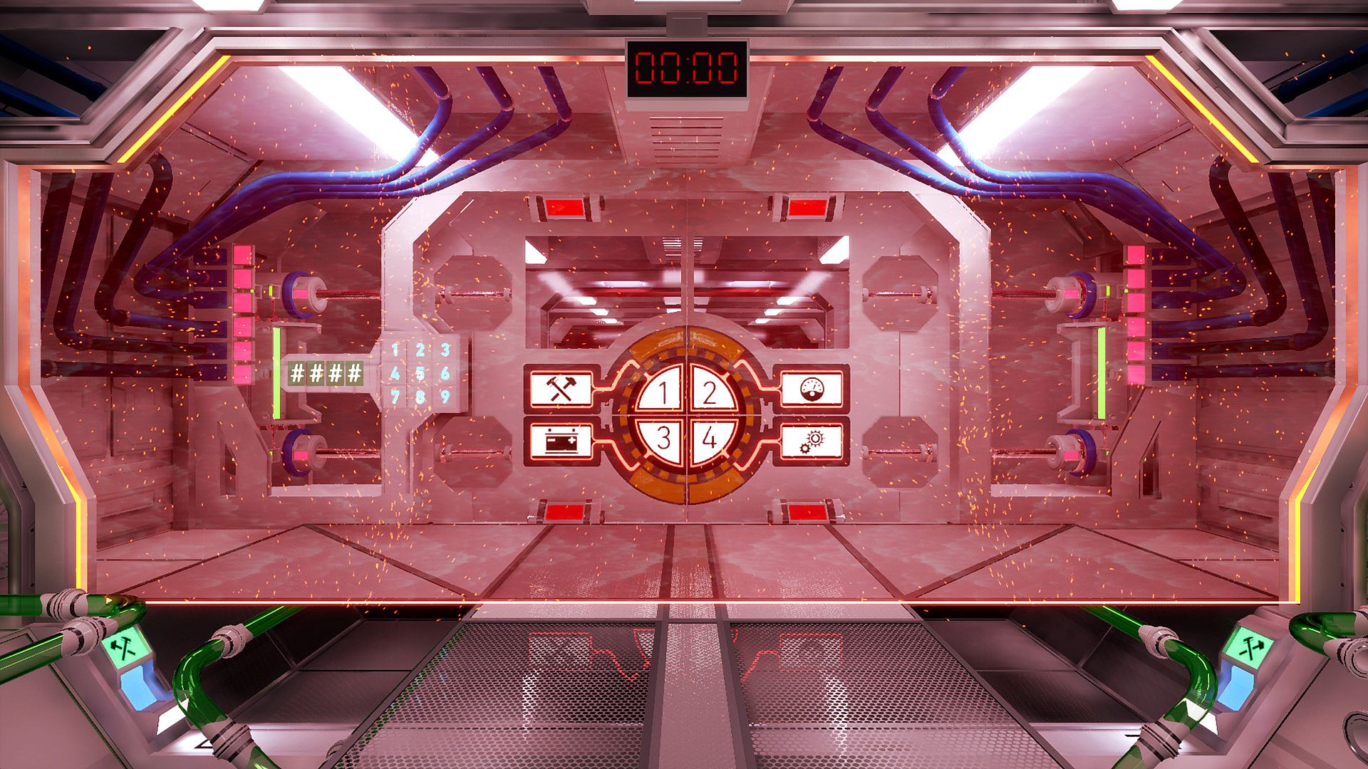 Using you wits and whatever tools you can find you must disengage the door locks to escape before your air runs out. Something is very wrong and you need to find out why but first you need to get out.