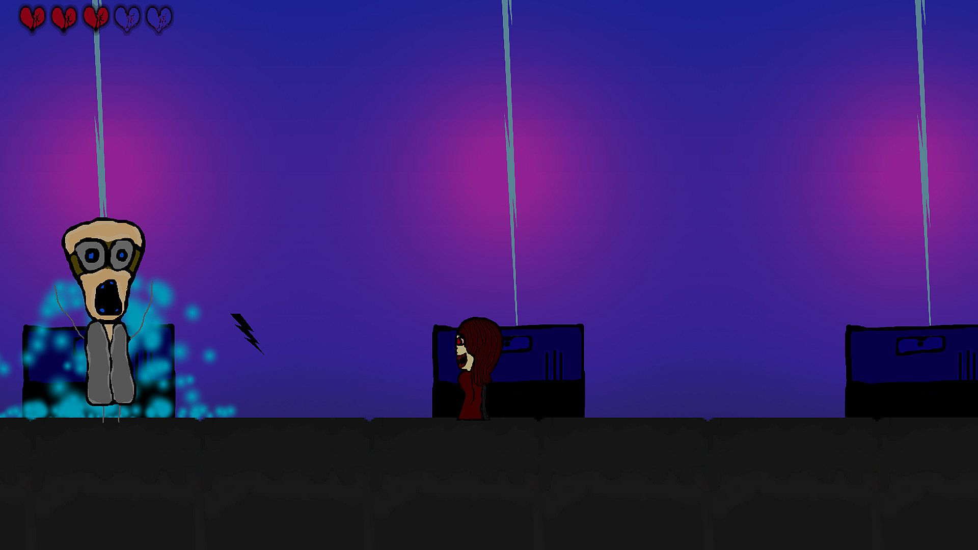 Escape From The Grim is a 2D platformer with inspiration from classic video games with simple controls. The Grim found love, but his touch killed her! For some time death has come to many with the attempt to bring her back to life and failed. With four lucky survivors, they will attempt to Escape From The Grim and end his madness! Can The Grim's love come back to life? Only time will tell!