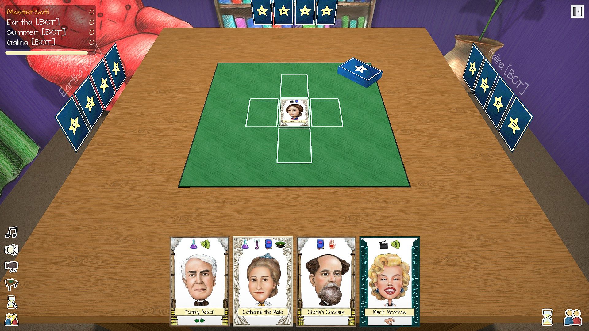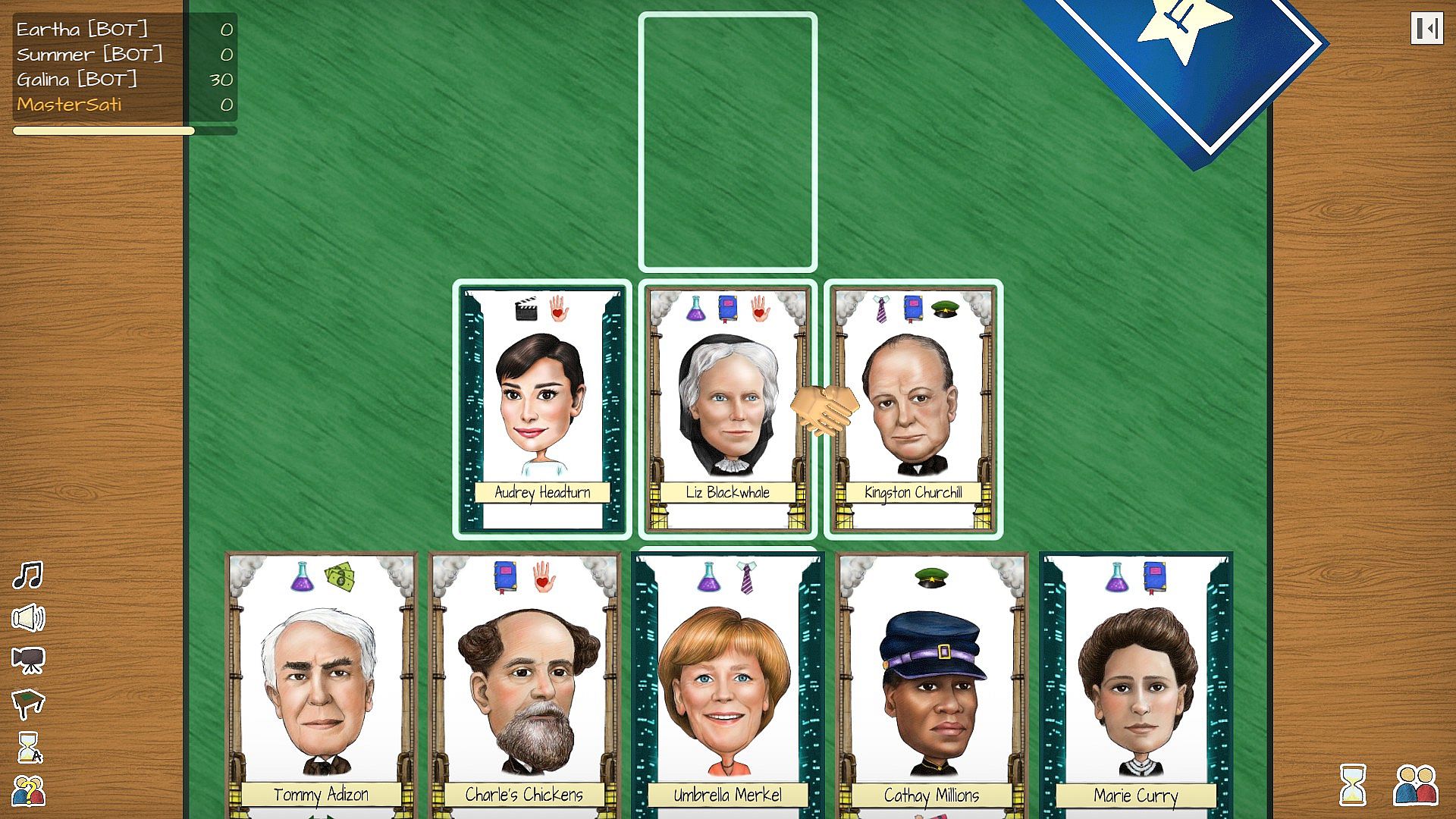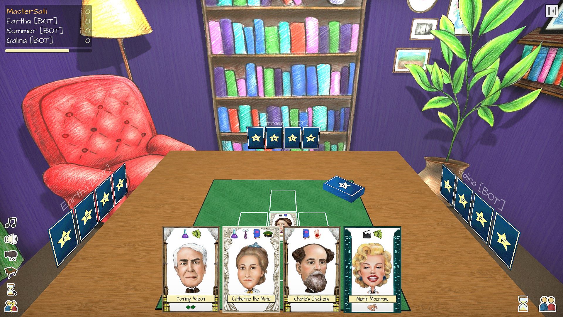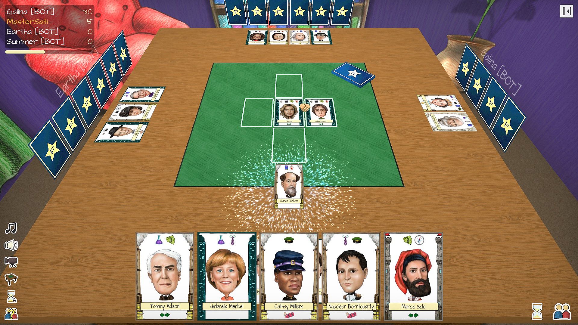 Everyone recognizes Albert Einstein or Bill Gates. Famousity introduces quirky parallel-universe versions like Albert Zweistein, Bill Dates, and Napoleon Borntoparty, all alive and ready to connect. Players jump into this lively world through a casual indie card game on PC. Simple rules make it quick to pick up, with a symbol-matching mechanism at the core. Match cards featuring 64 unique caricatures of historical figures, use special actions to sway outcomes, and play online with friends or strangers. This all-ages family game suits groups seeking lighthearted fun.