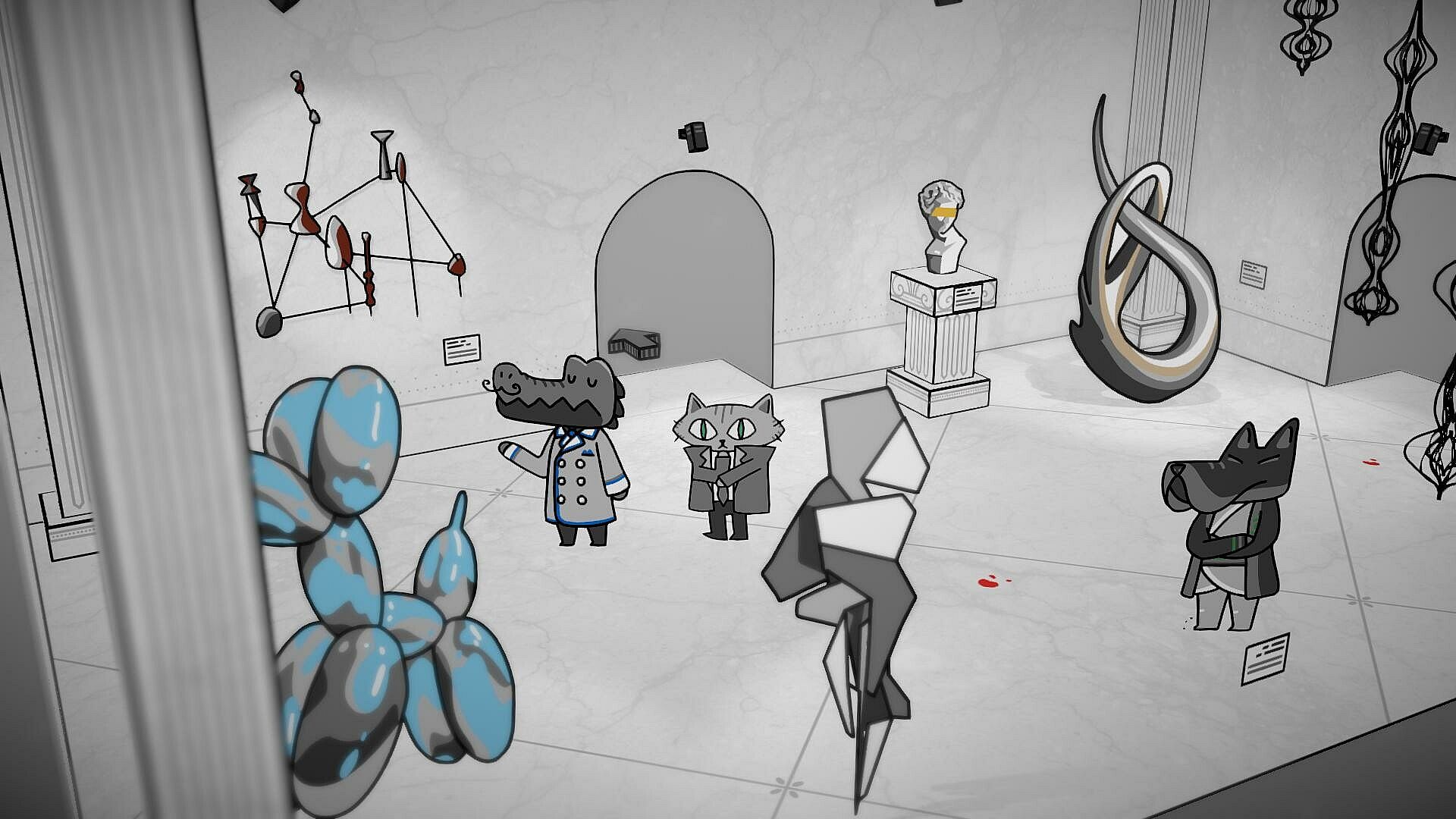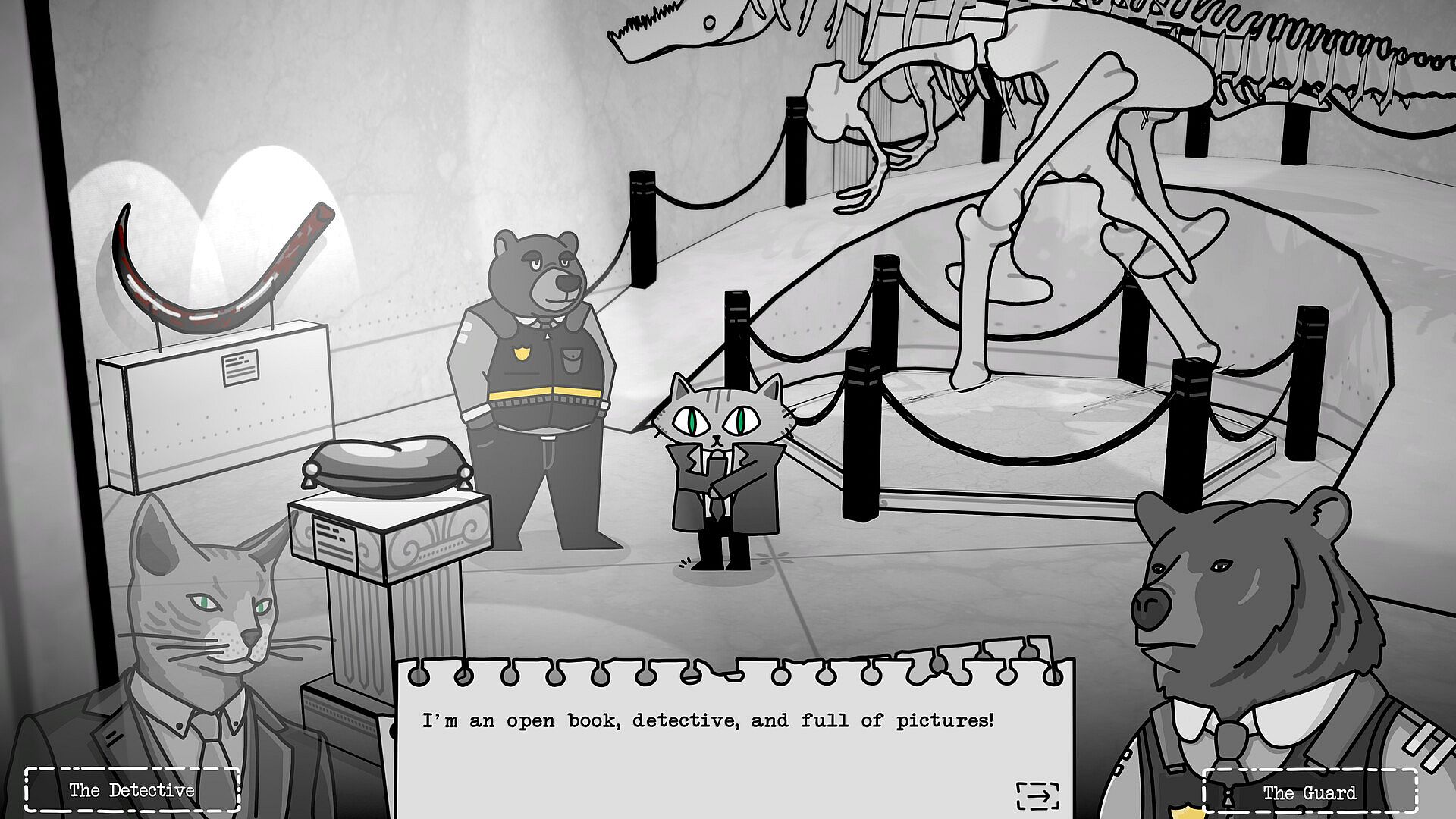 While it's no surprise that someone would scheme such an intricate heist, mismatched alibis and mistrusting motivations provide little explanation as to how it devolved into a grizzly murder. With such a strange cast of suspects, no one is above a carnivorous suspicion, so converse with, and cross-examine them all. Could it be the true crime podcasting raccoon? How about a pig tourist with a torrid past? The snooty schnauzer of another generation?