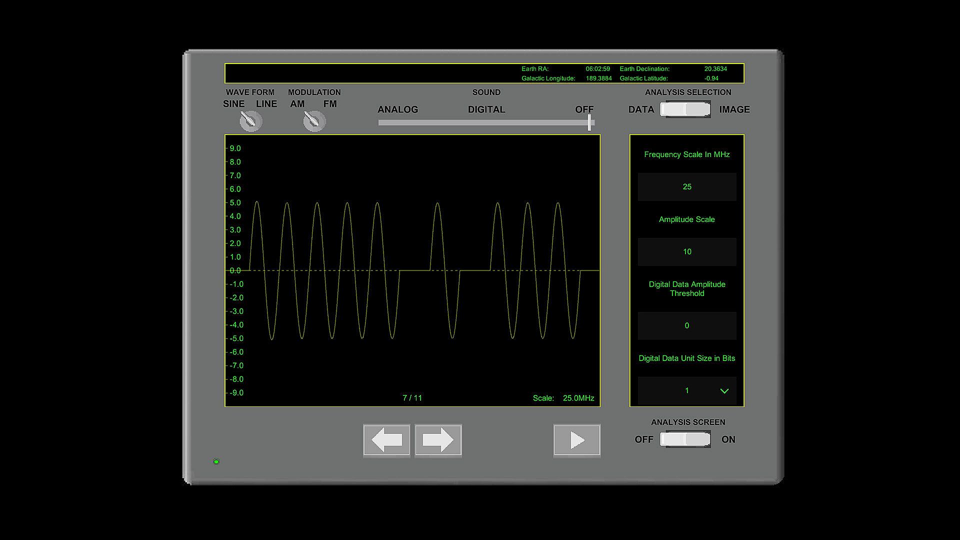 • Analyze radio signals originating from outer space using instruments inspired by the SETI research program and popular science fiction.