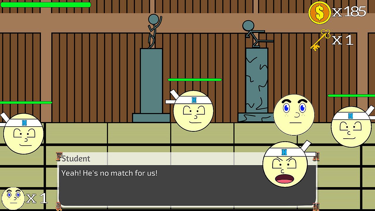 - Defeat dojo masters by identifying their attack patterns and choose their fate by either killing or sparing them.