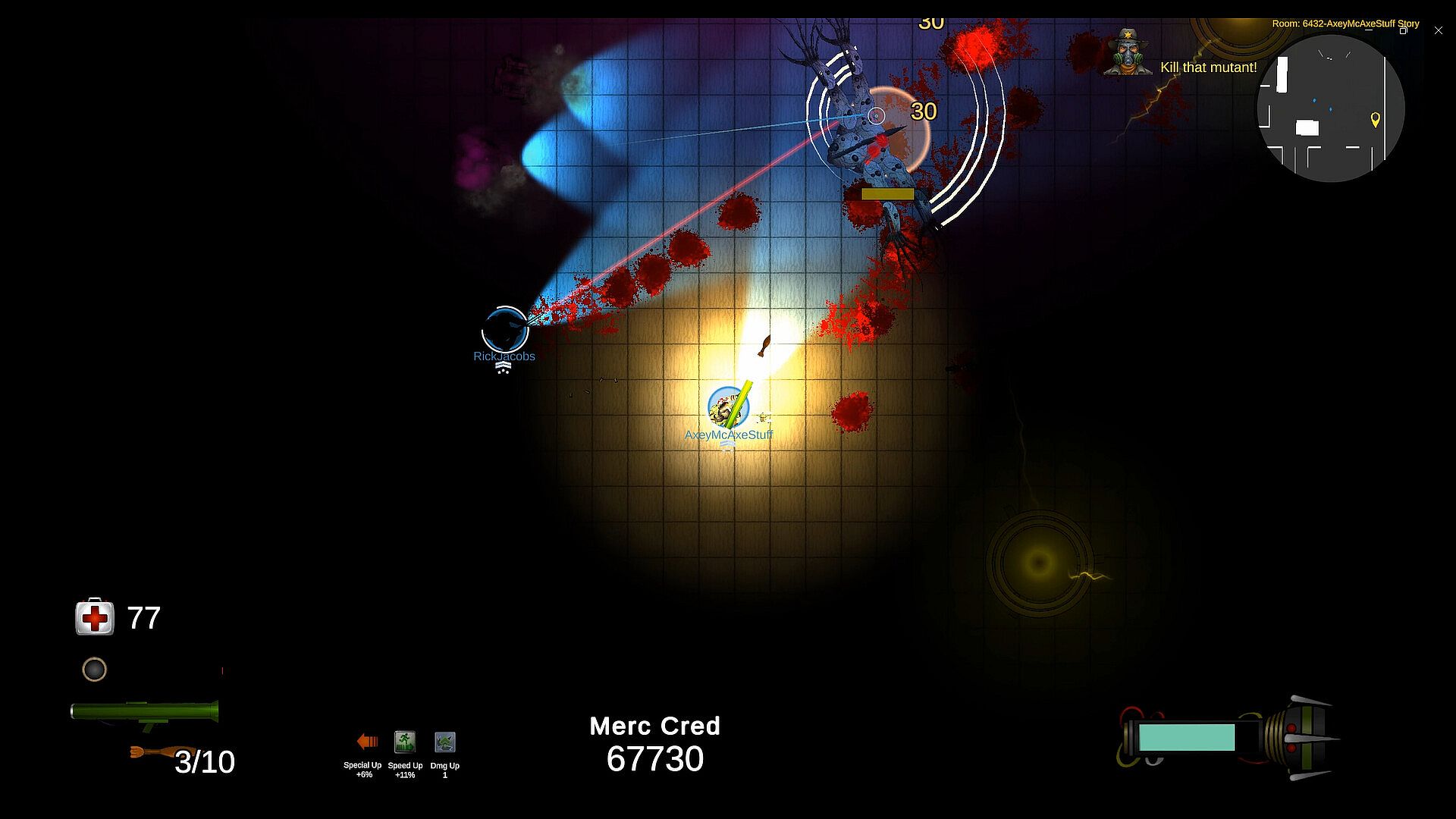 Choose between four different mercenary groups to join. Each group has a different set of perks to choose from as you move up the ranks and prove yourself by earning "Merc Cred" as you go. The more things you kill, the more Cred you earn to rank up. Call in air drops that contain supplies and technical upgrades for your weaponry that will turn the tide of battle!