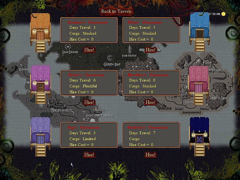 • Hire cooks, rogues, battle-pit managers, priests, blacksmiths, and heroes.