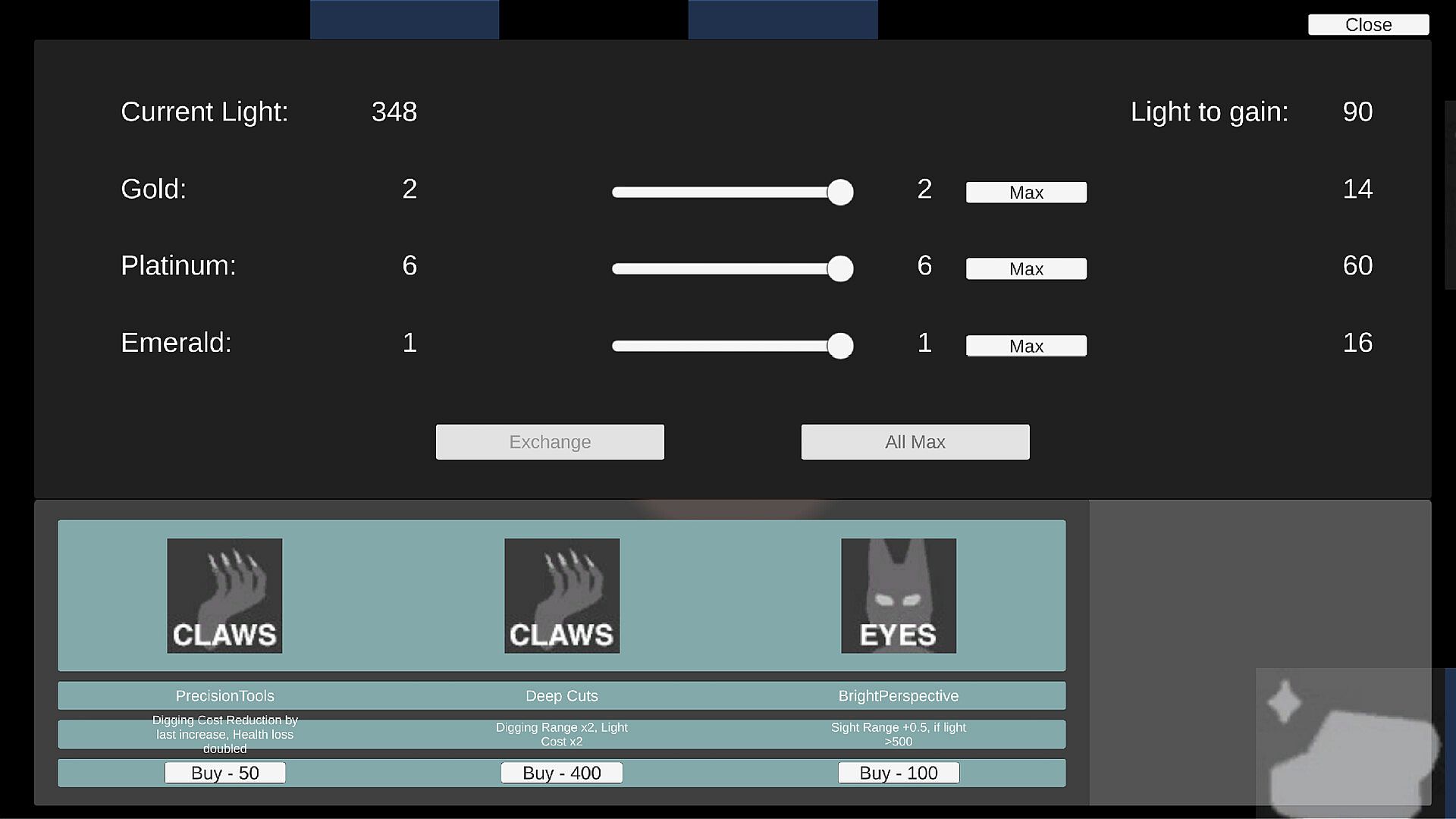 Enhance your adventurer's fox-like senses to detect hidden treasures and navigate through the darkness. Choose upgrades wisely to improve your digging efficiency, sight range, and survival abilities. Every upgrade path offers a unique strategy to explore the depths of the mine.