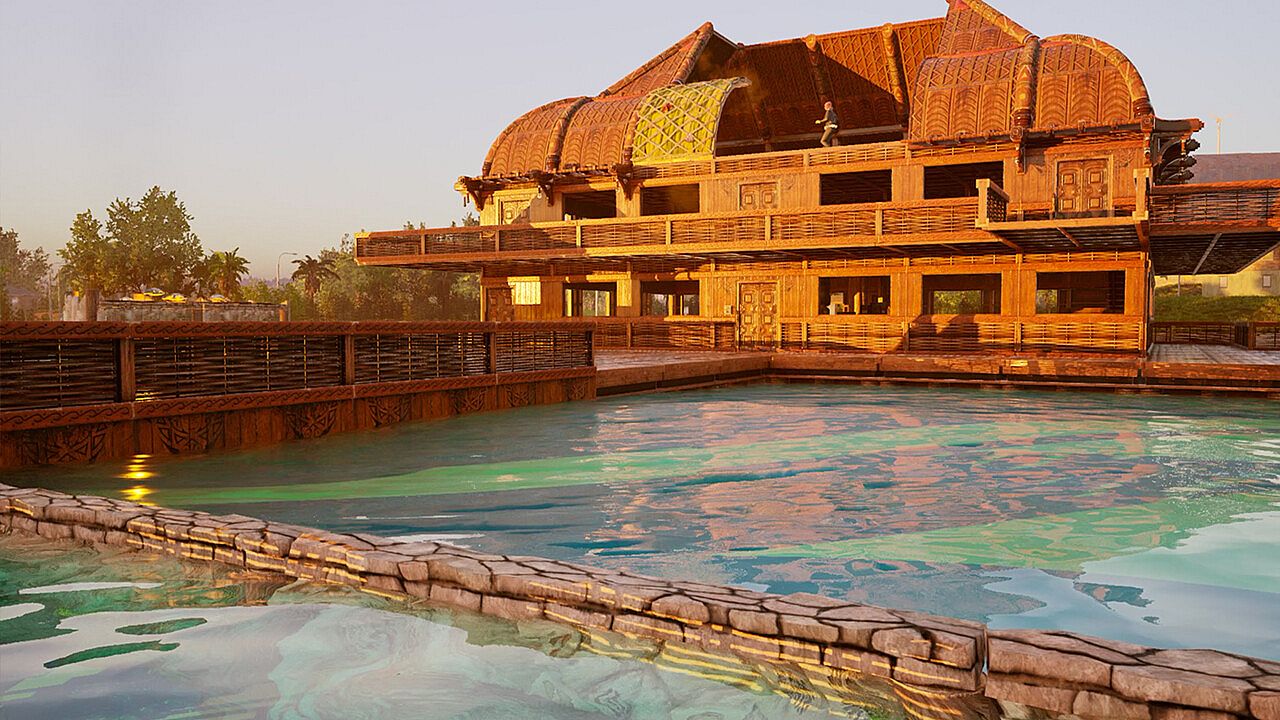 A dynamic weather system creates unpredictable hazards while the day/night system breathes life into a map based on real-world topographical data from Maui. The procedural building, road, and river system means unique worlds and environments to explore.
