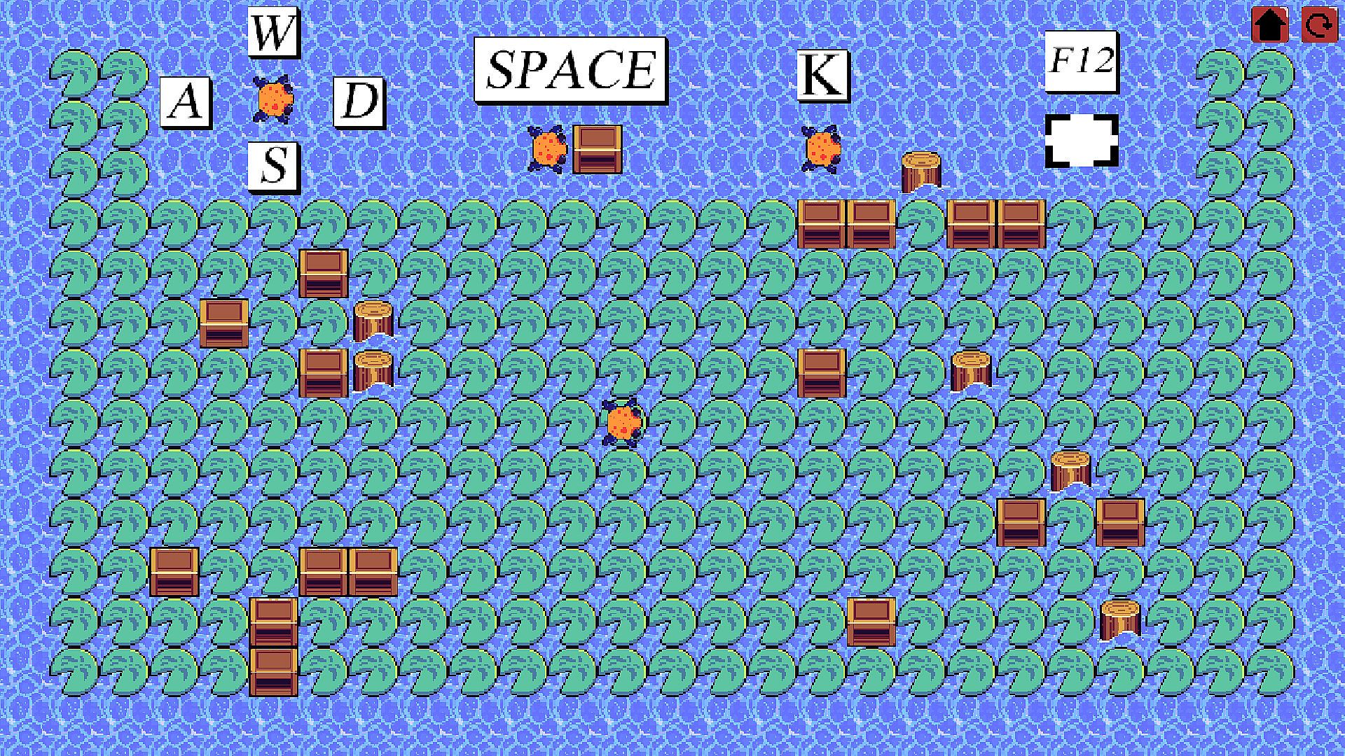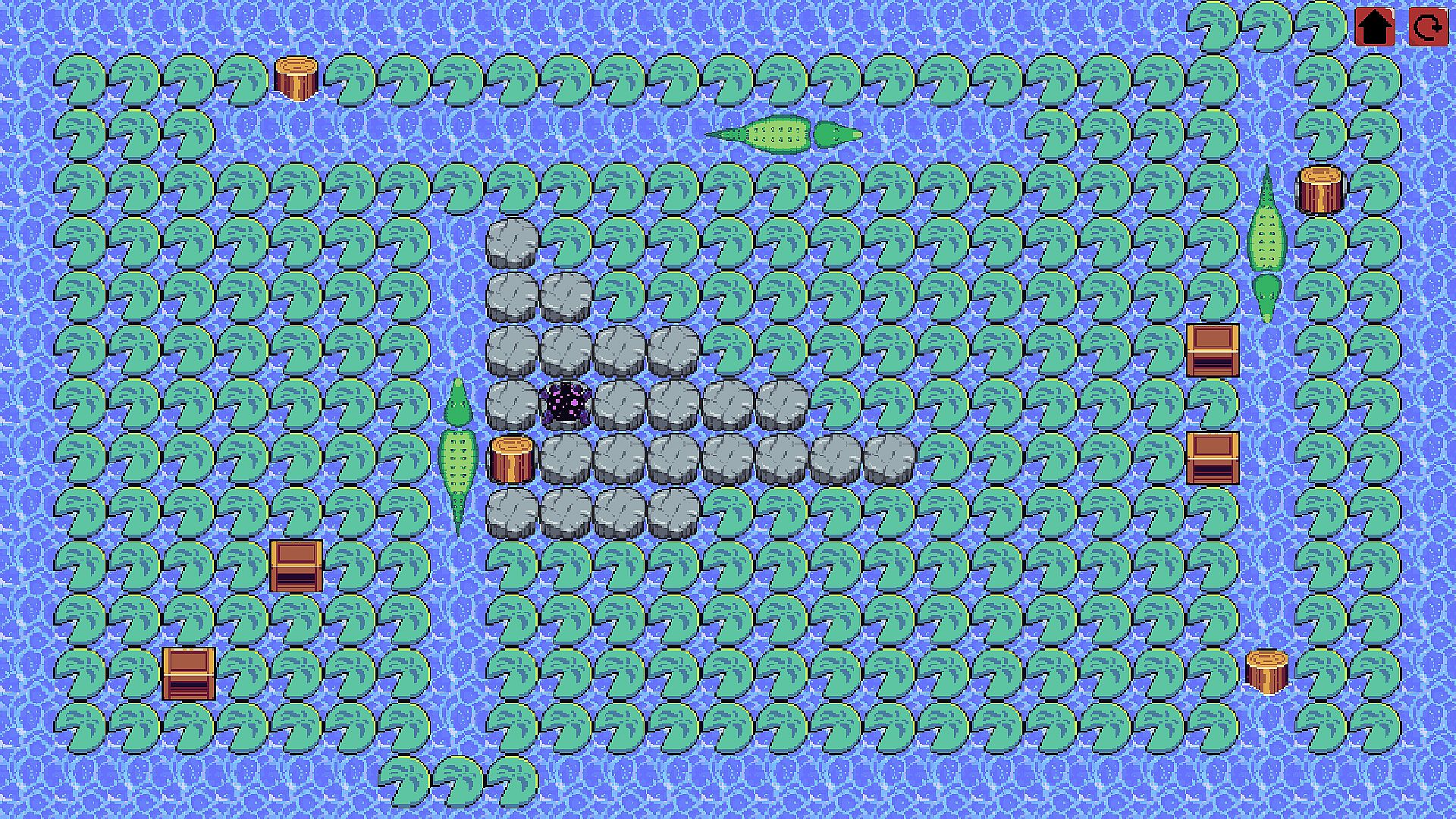 The levels are designed with a variety of natural elements such as fallen logs, rocks, and streams that affect the movement of the boxes and the frog's path. These elements are not just obstacles but also tools you can use to solve puzzles creatively. For example, a log might serve as a temporary support to push a box to the desired location.