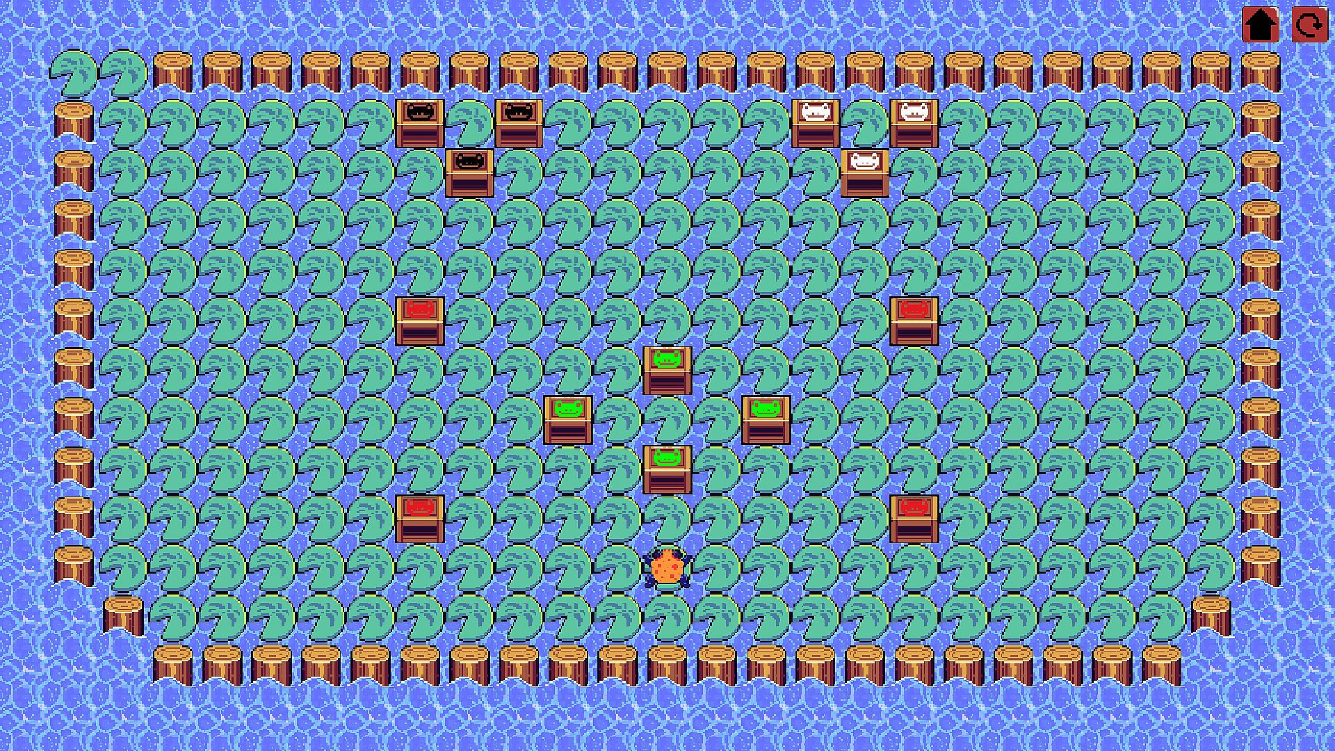 Players control a clever frog that pushes boxes across a board dotted with natural elements like logs, rocks, and streams. The core challenge lies in lining up three or more matching boxes to clear them away and advance through levels. These obstacles shape box movement and frog paths, turning them into aids for clever puzzle solutions. Levels ramp up in complexity with varied box colors and tricky layouts that demand sharp planning. Casual strategy shines as players master each board's demands. This indie puzzle game suits those who enjoy accessible starts paired with deeper tactical tests.