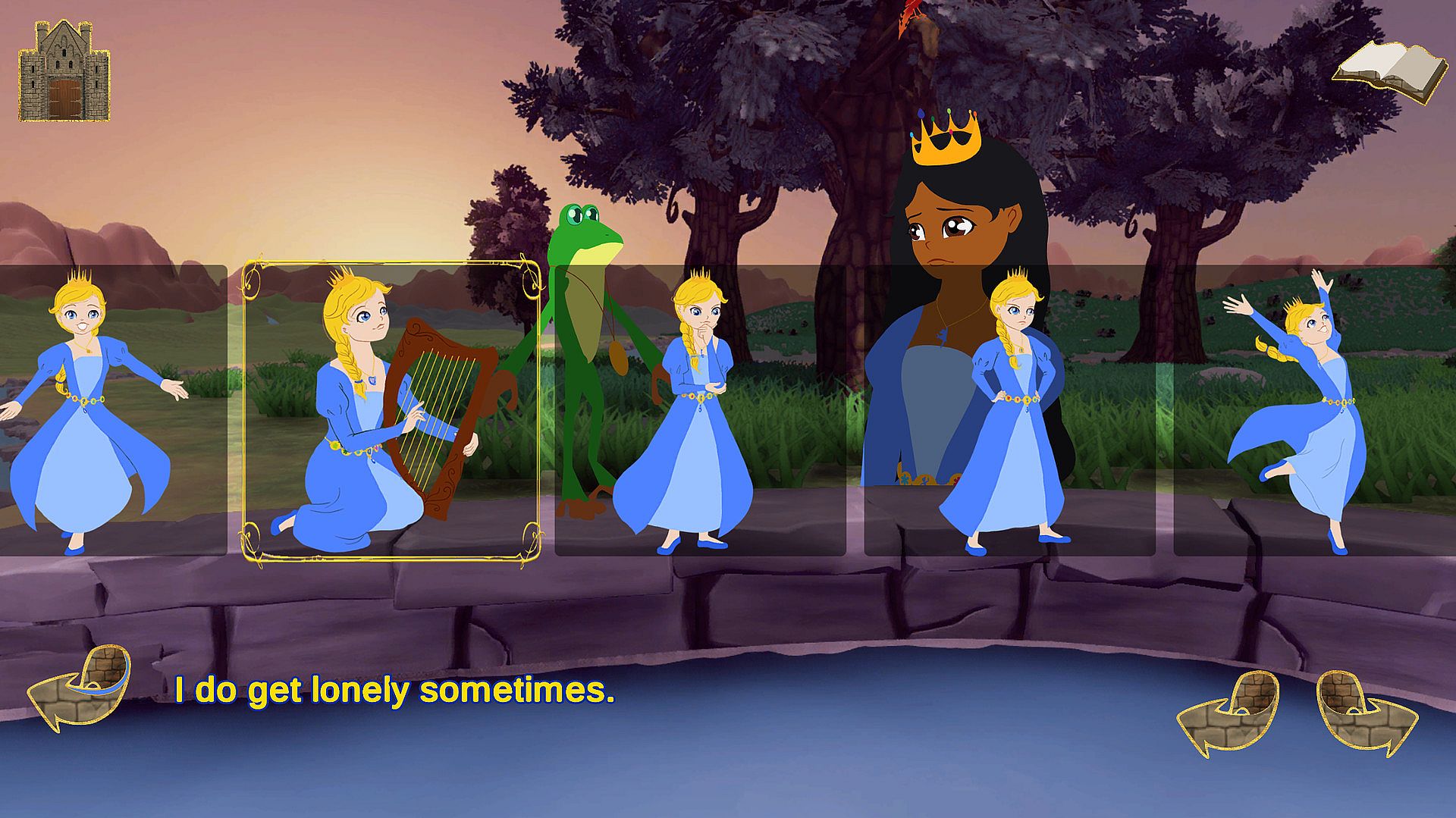 When you begin, you will be asked to choose the story from the princess’s or the frog’s point of view. You can play both storylines as often as you like. Each version is saved automatically.