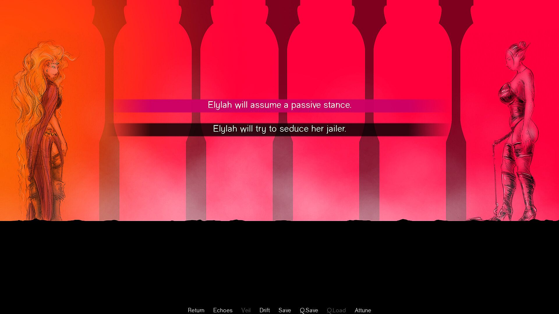 Fugue of Delights is an erotic, daemonic visual novel crafted as a ritual of art and narrative. You will not click through choices. You will traverse layers of myth, longing, and veiled memories — guided by Elylah, the princess of erotic dreams, in search of a muse long lost to the darkness.