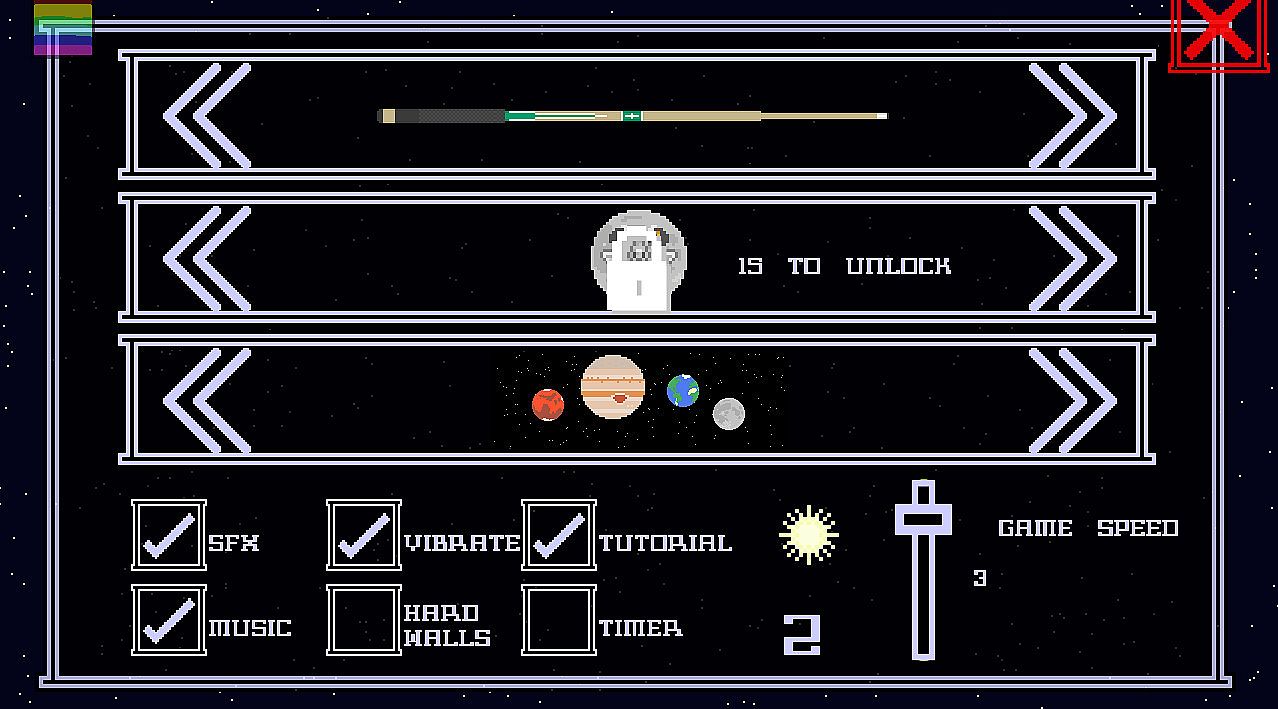 Galactic Pocket Billiards is a relaxing physics based puzzle game where you use your cue stick to knock celestial objects into black hole pockets. Use planetary gravity to swerve your asteroid cue ball around corners and complete challenging levels.