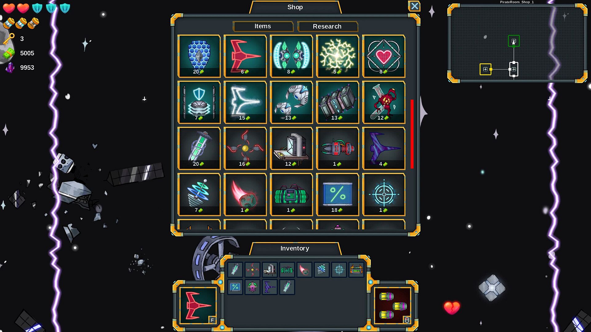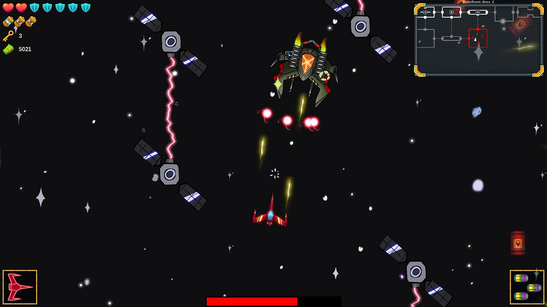 Ahead are more than two hundred manually created areas from which levels are procedurally generated. Everything is teeming with deadly enemies who want to take your life. Reach the final boss and save the galaxy. Or choose your adventure path and see how long you can survive. Progression system that increases your power and the power of your enemies will during the game.