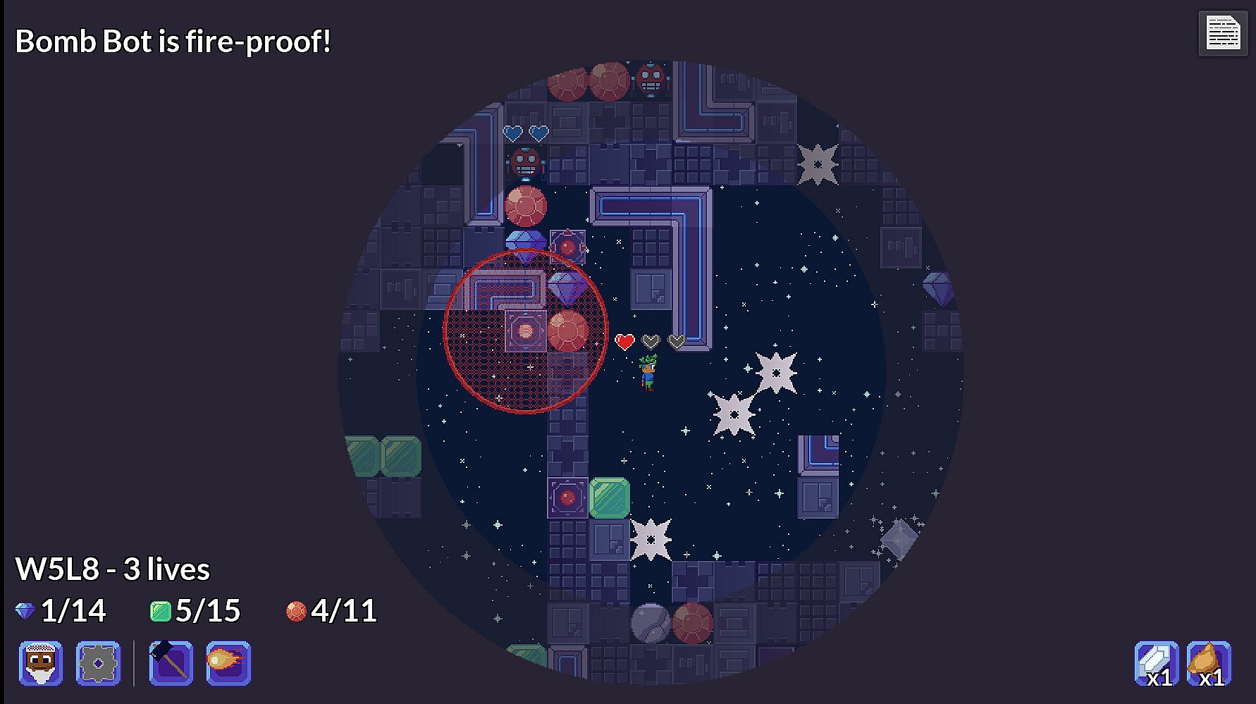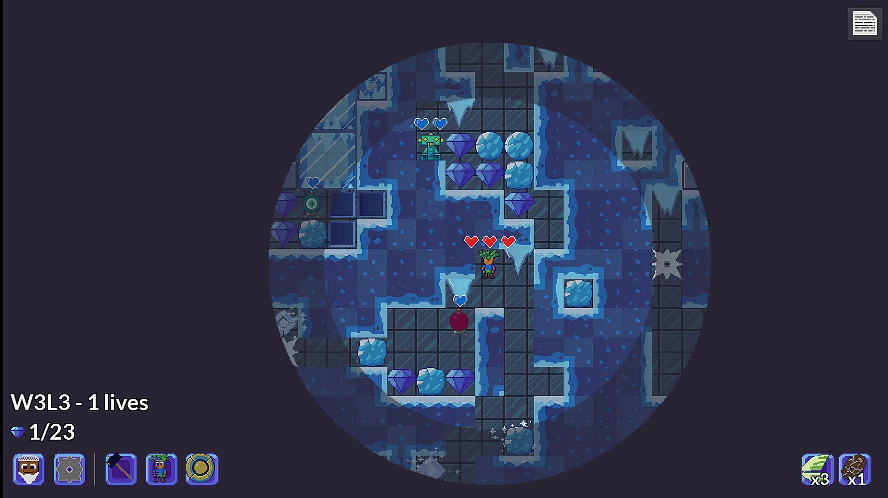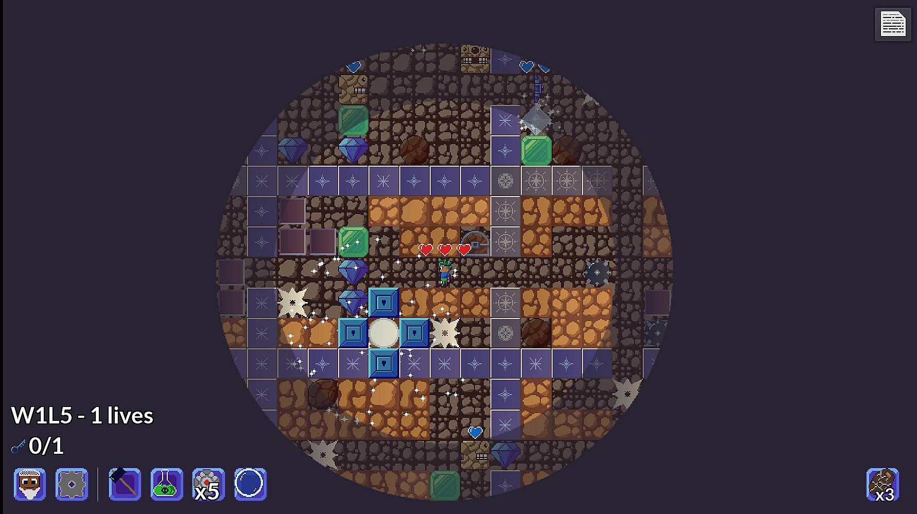 Gem Worlds is a short roguelike-puzzle hybrid, inspired by classics such as Boulder Dash and Supaplex, with a mixture of dungeon-crawling roguelike elements.