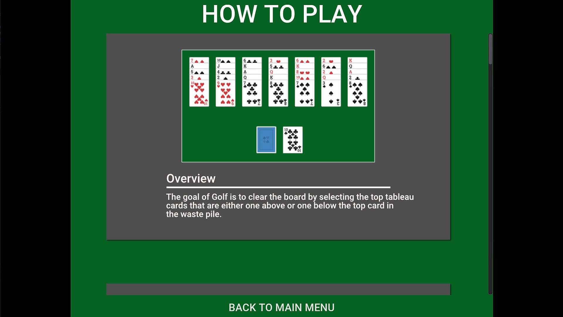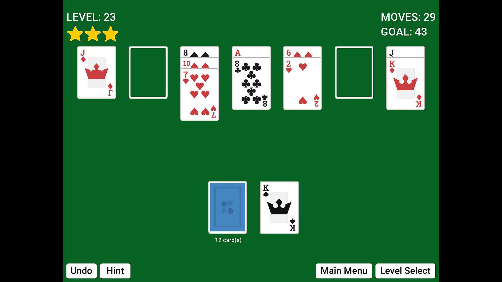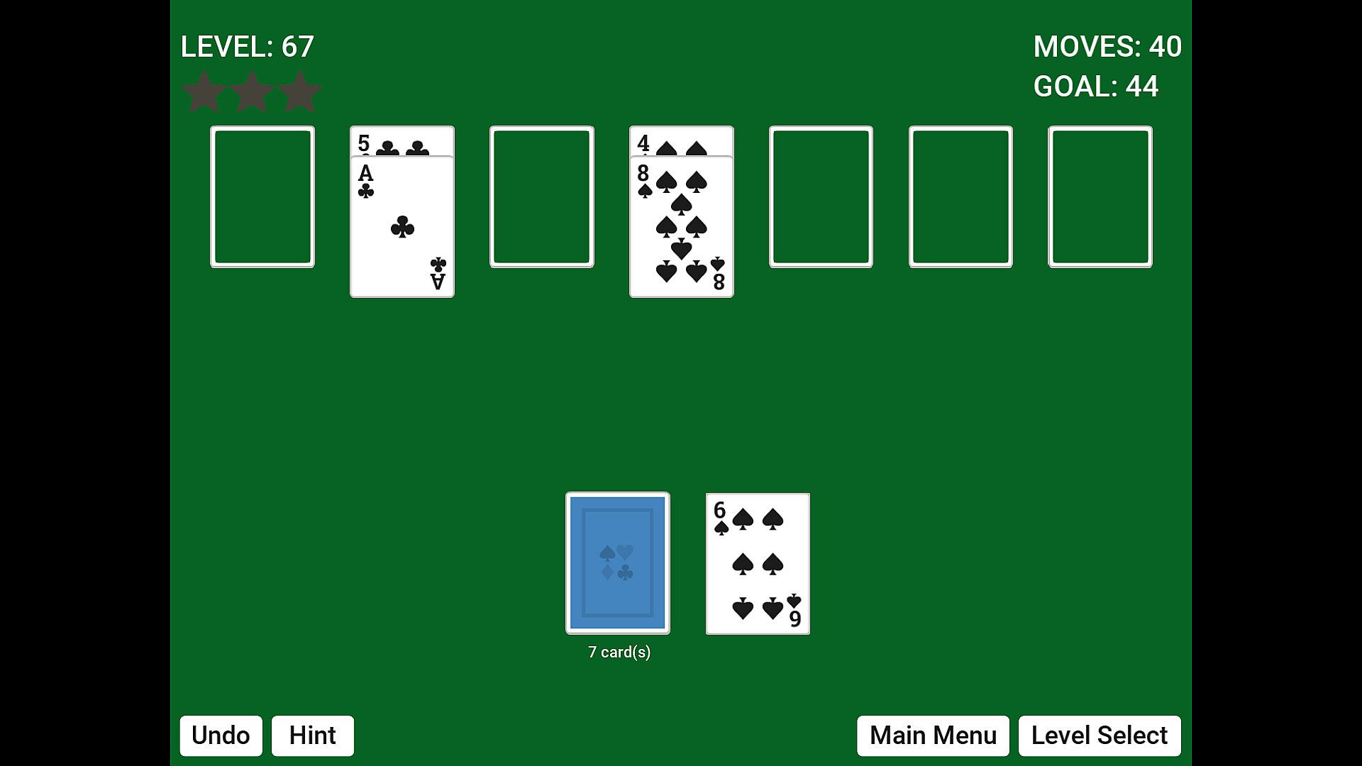 A simple Golf Solitaire game with several common rule variations and a challenge mode with more than 100 levels! Can you beat all 100+ levels?
