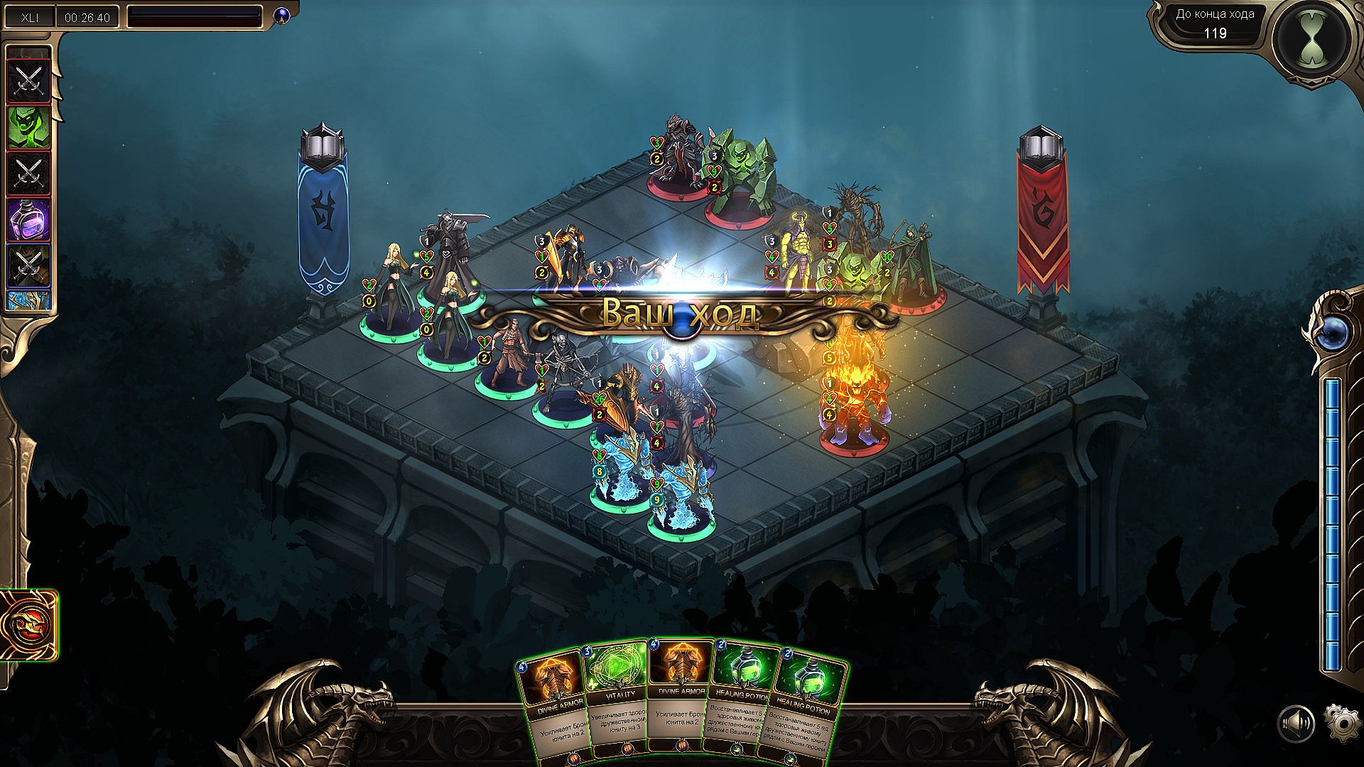 We drew inspiration from a variety of genres and diverse games: chess, Heroes of Might and Magic, Diablo, Warhammer 40k: DoW, Warhammer: Total War, Hearthstone. We do our best to improve the game’s attractiveness to people who prefer winning with their own abilities, style, cunning and calculation. We are trying to minimize the Pay-To-Win effect to a Pay-To-Opportunities system, so that the players could showcase their skill more.