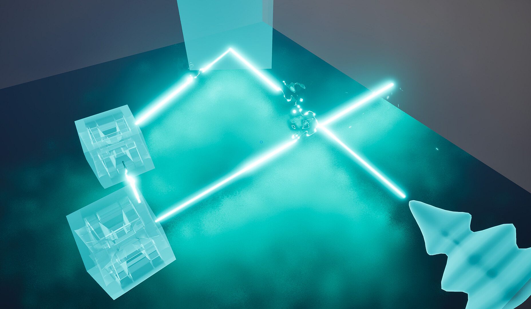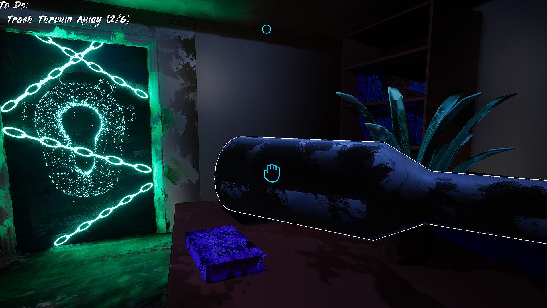 Interactions, every object can be picked up and has physics, so have fun placing objects around and stacking them to solve puzzles!