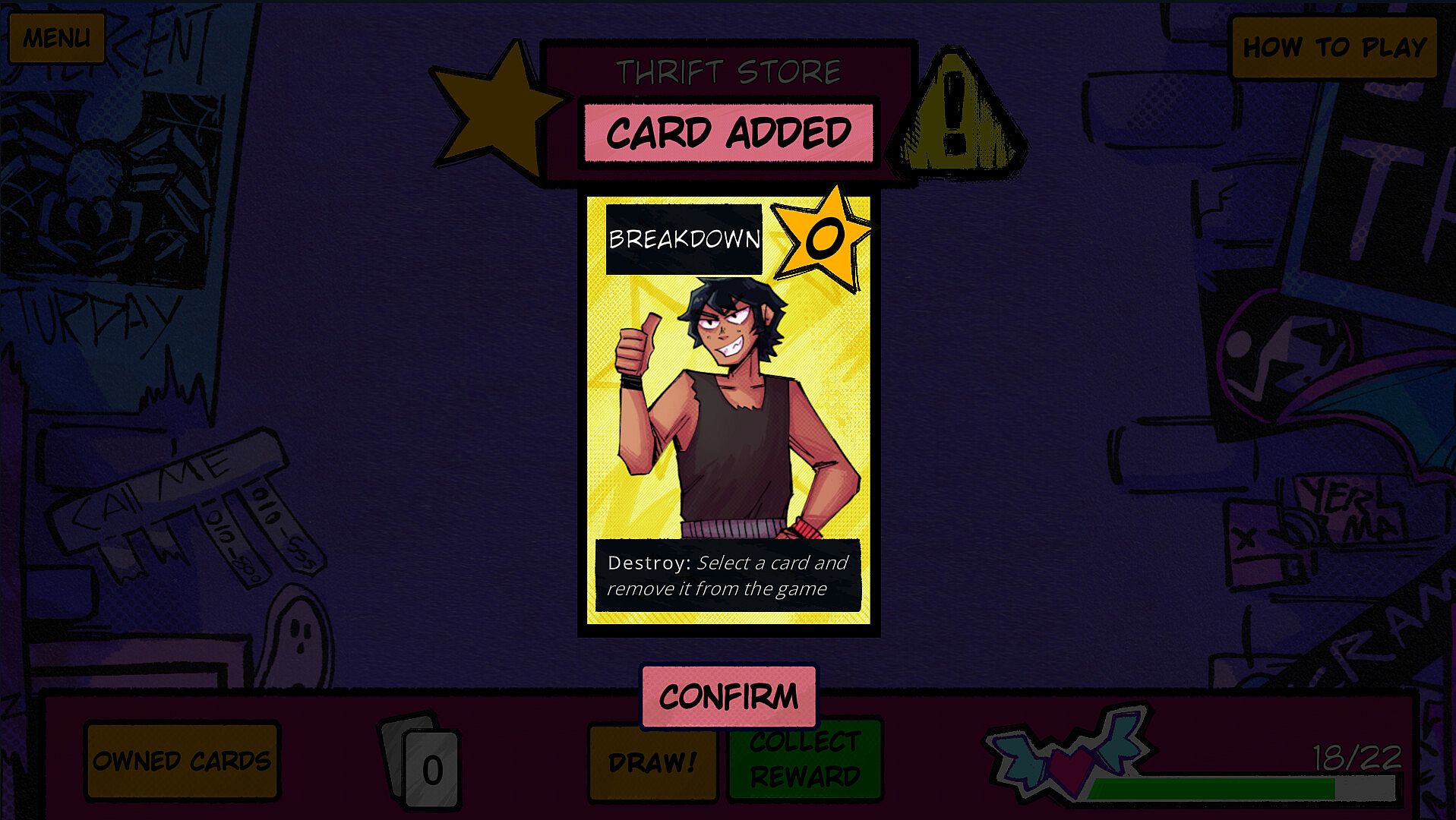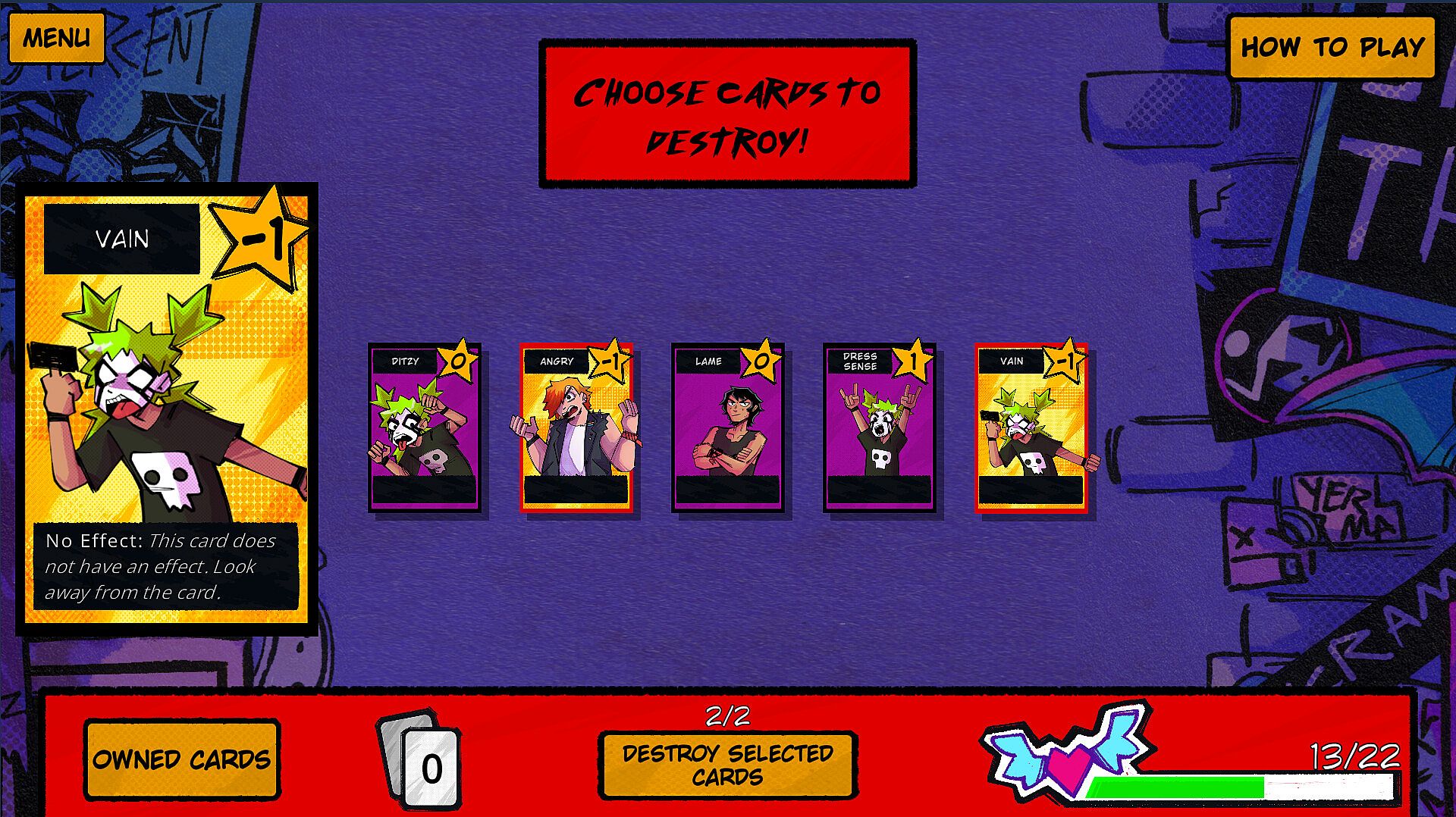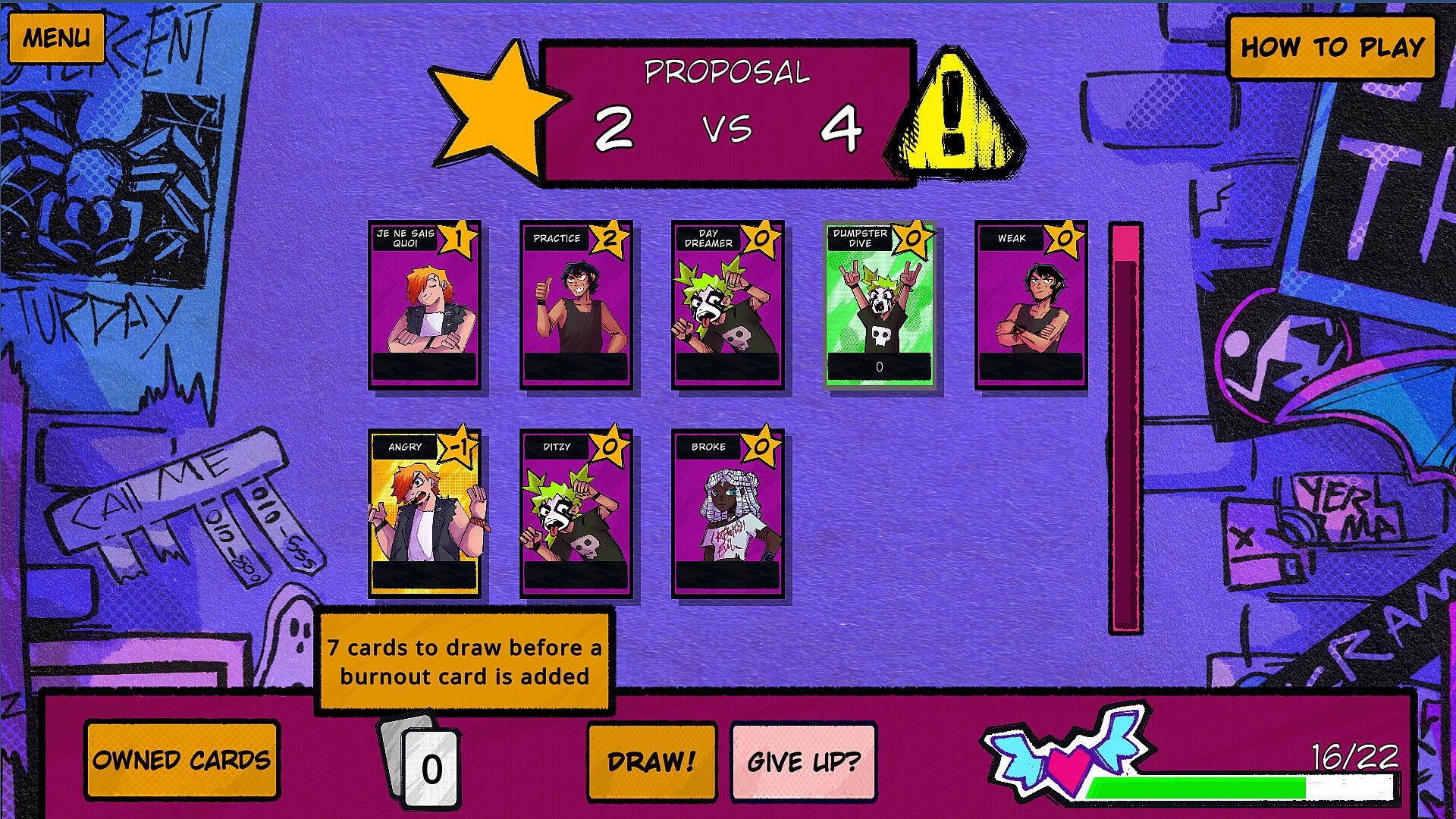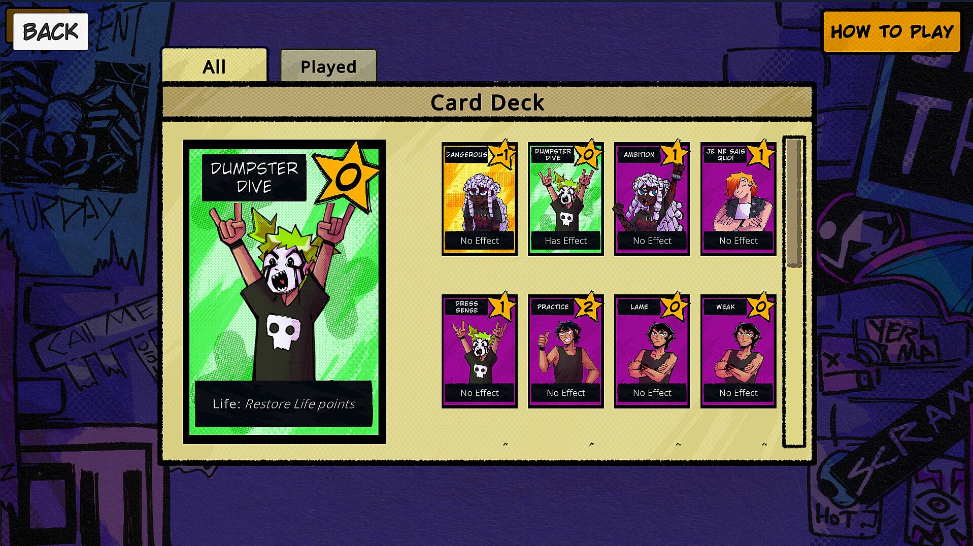 As with any band just starting out, you’ve got your problems, and this is reflected in your deck at the beginning of the game…it sucks. Beat challenges to gain powerful new cards with various effects.