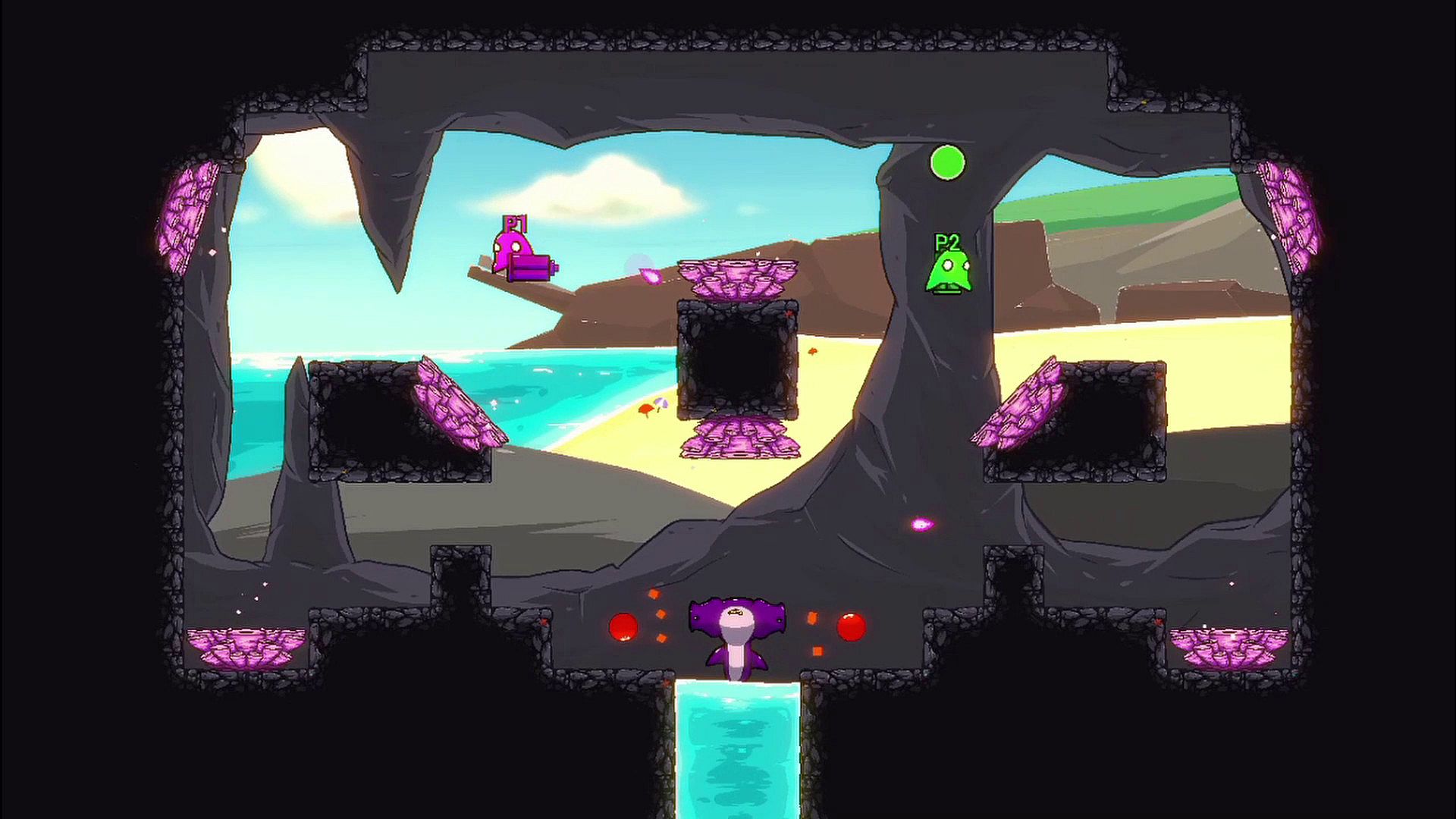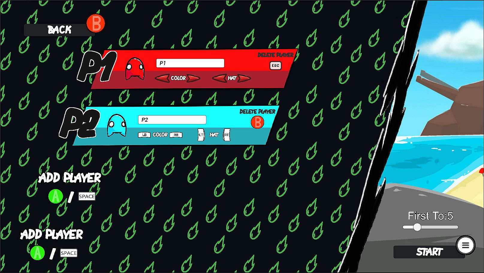 Gun Game is a multiplayer versus party-platformer with guns that get stronger as the game goes on. Each round, players are pitted against each other in a new arena, and a crown is awarded to the last subject standing. After a few of these rounds, its upgrade time! Everyone selects an upgrade from different branching paths, and then it's back to the action. Keep doing this until someone gets X amount of wins, and then that's game!