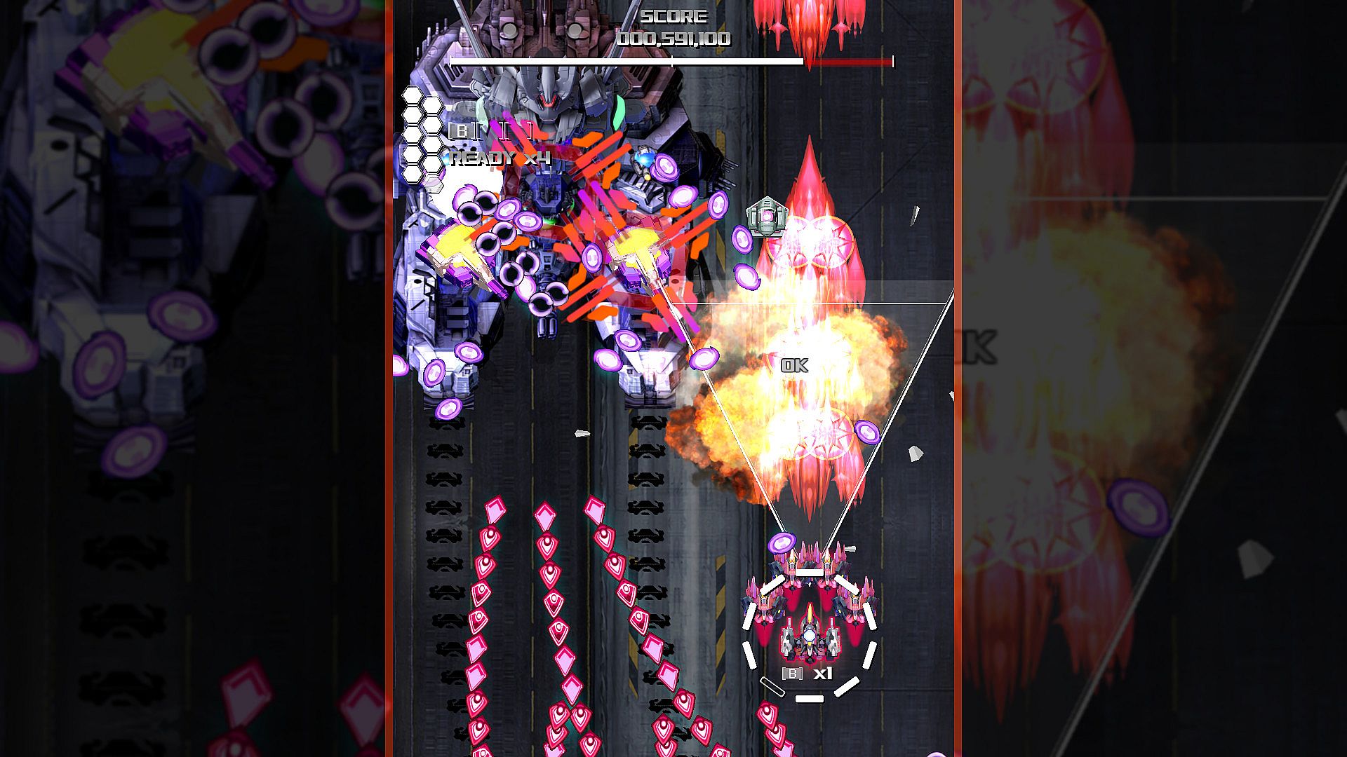 Überwältige die Feinde in diesem intensiven Bullet-Hell-STG mit Lock-ons und aufgeladenen Energy-Blasts, die dir den ersten Schlag ermöglichen. Aggressives Spielen liefert Ressourcen, um Schüsse zu boosten oder Bildschirm-leernde Bombs auszulösen - und schafft so zerstörerische Feedback-Loops. Erzielte Punkte verlängern Leben und finanzieren das Shop-System für langfristigen Fortschritt. Arcade Mode fordert Single-Credit-Runs auf Online-Leaderboards heraus, Standard Mode bietet ausgewogene Checkpoints für faire Herausforderungen. Im Roguelike Arrange Mode werden fünf Stages prozedural remixt, wobei Classic-Builds Schiffe durch Enemy-Kills leveln lassen und Minimal auf Kernschiffe setzt. Drei Charaktere sorgen für abwechslungsreiche Styles - Bagon mit Homing-Lasern und Black-Hole-Bomb, Damul mit Full-Screen-Coverage und Laser-Beam, Gunex mit prädiktiven Charged Bombs - ideal für Reflex-Profis auf Highscore-Jagd und Meisterschaft.