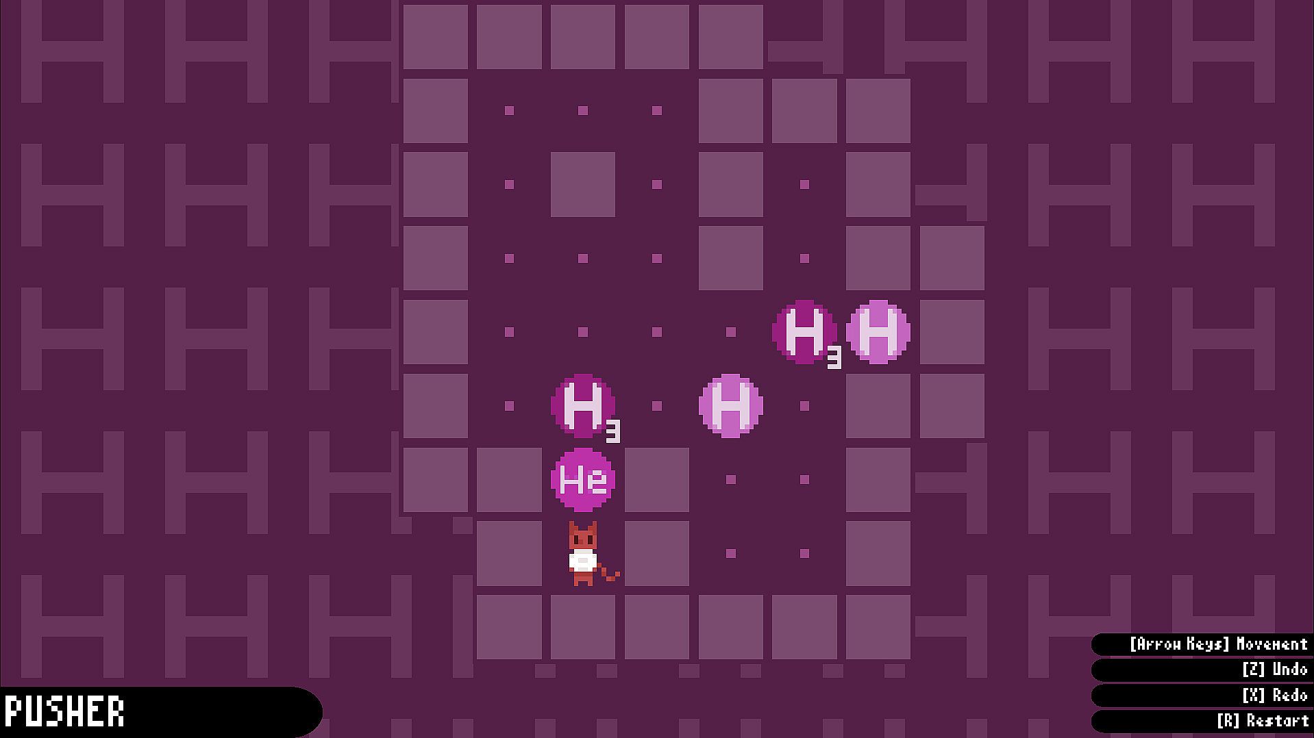 As you process this game, there will be more mechanics: Like He atom could push everything including H3(?) atom etc.