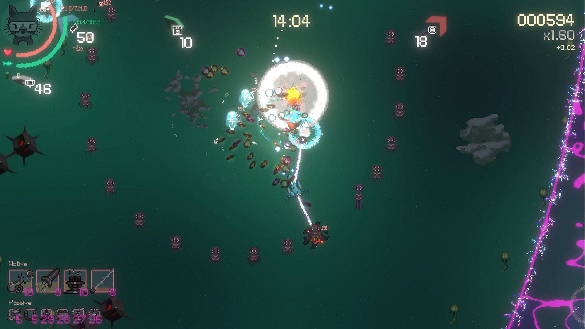 - Kill enemy spawn gates to collect ingots that can be used between games to give passive buffs to the ship systems