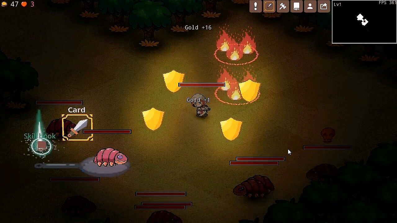 • When monsters die, they drop equipment and skill books, which can be picked up by the player.