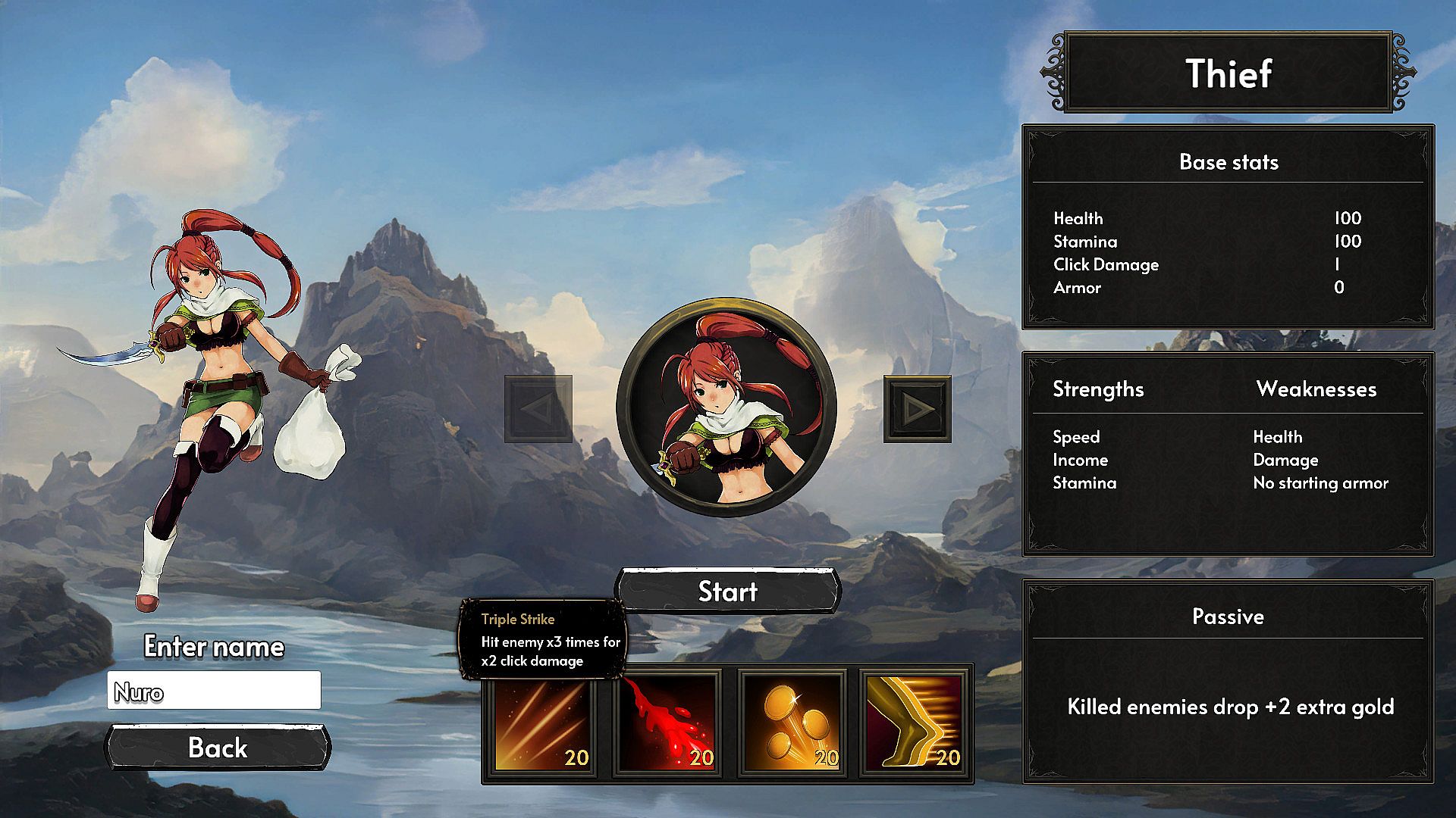Thief gains increased gold when killing an enemy.