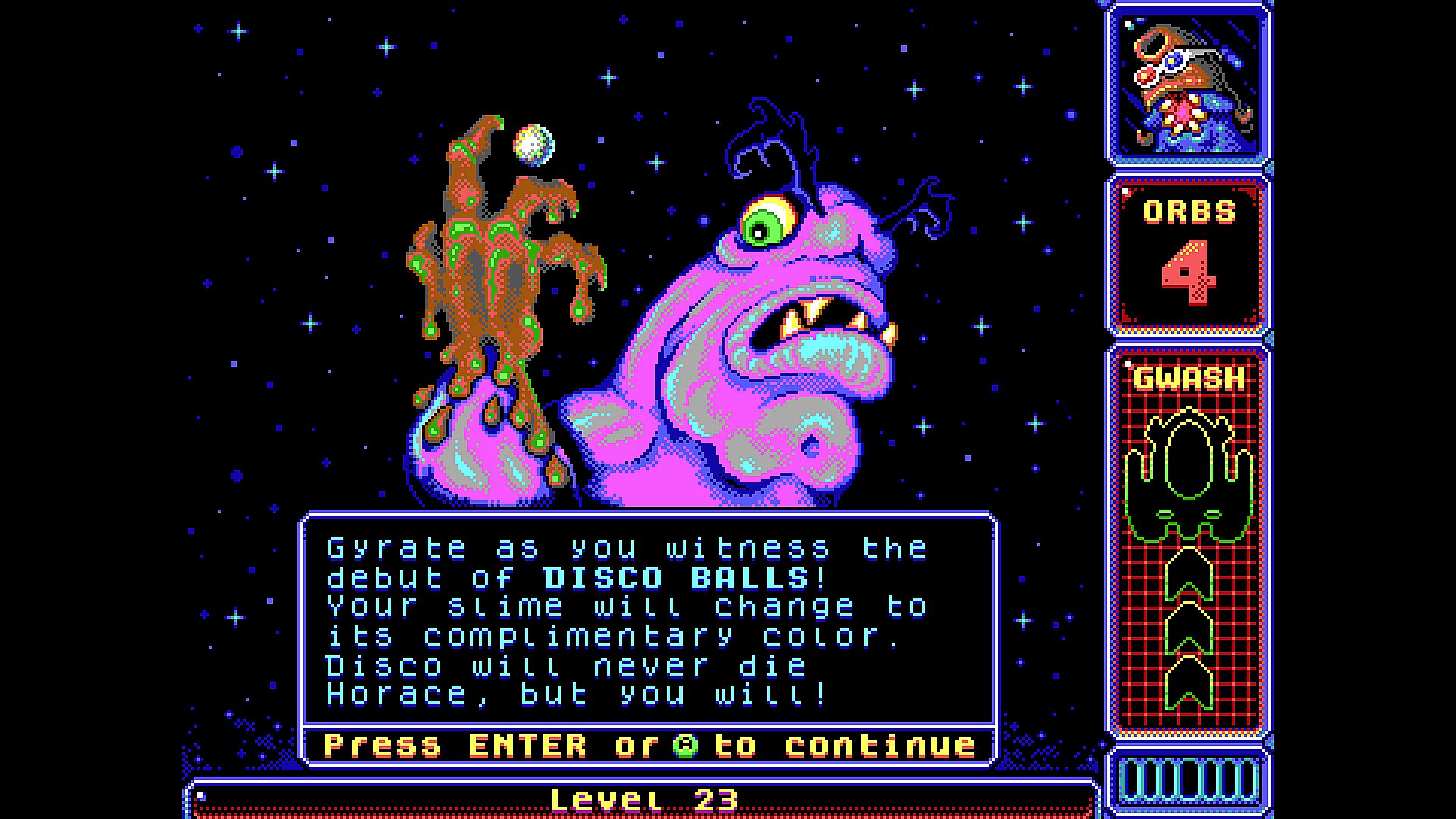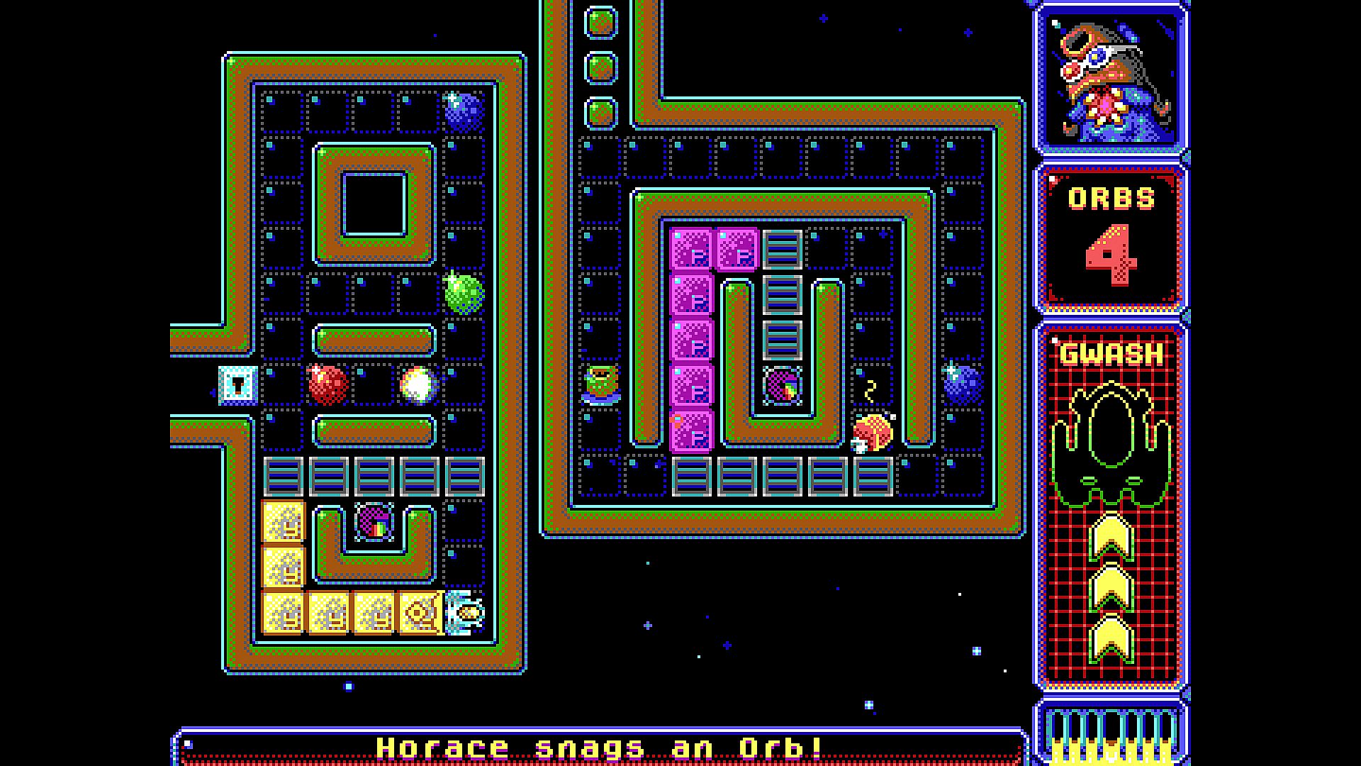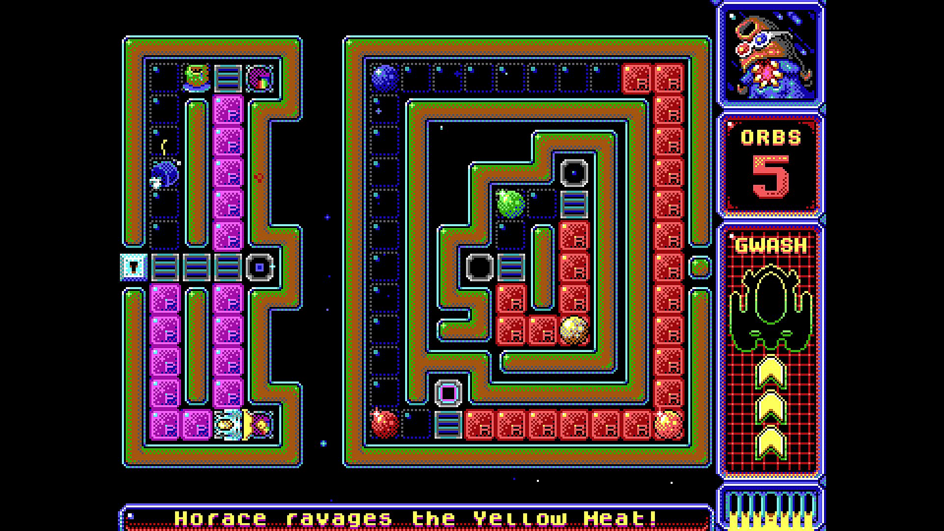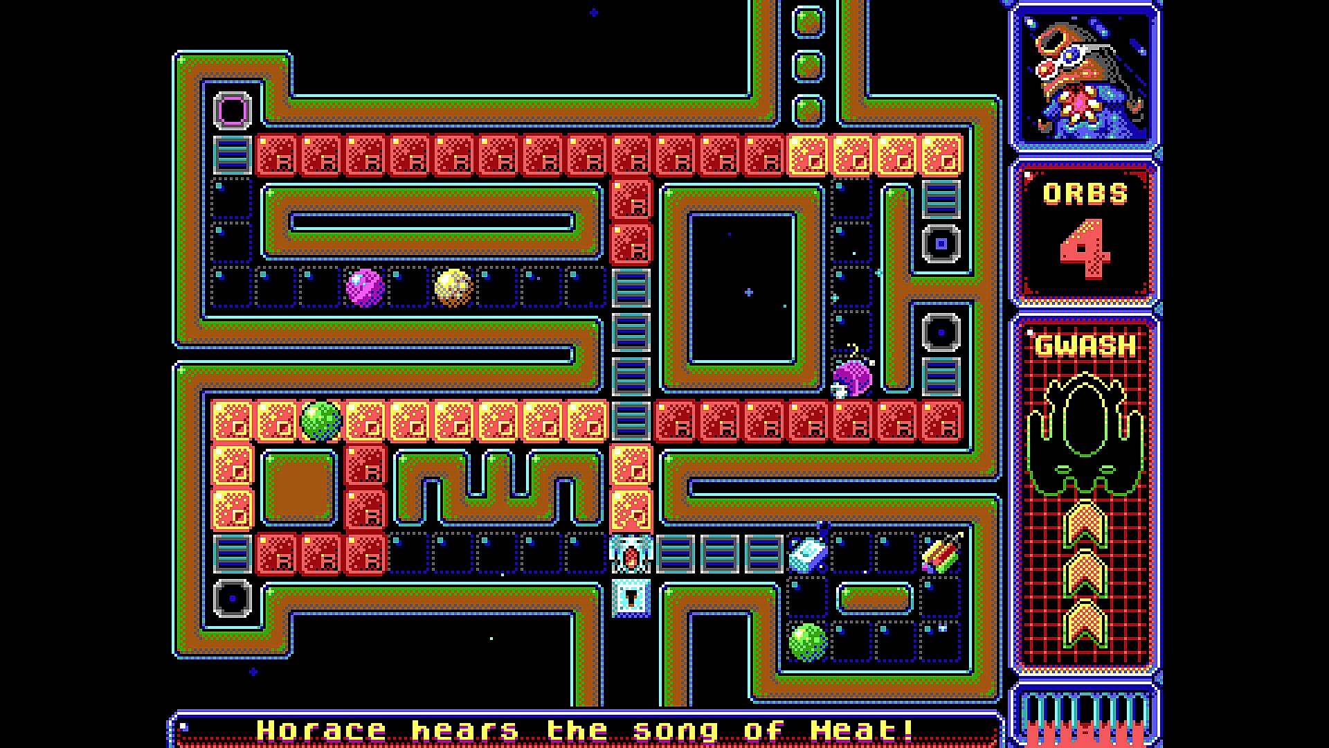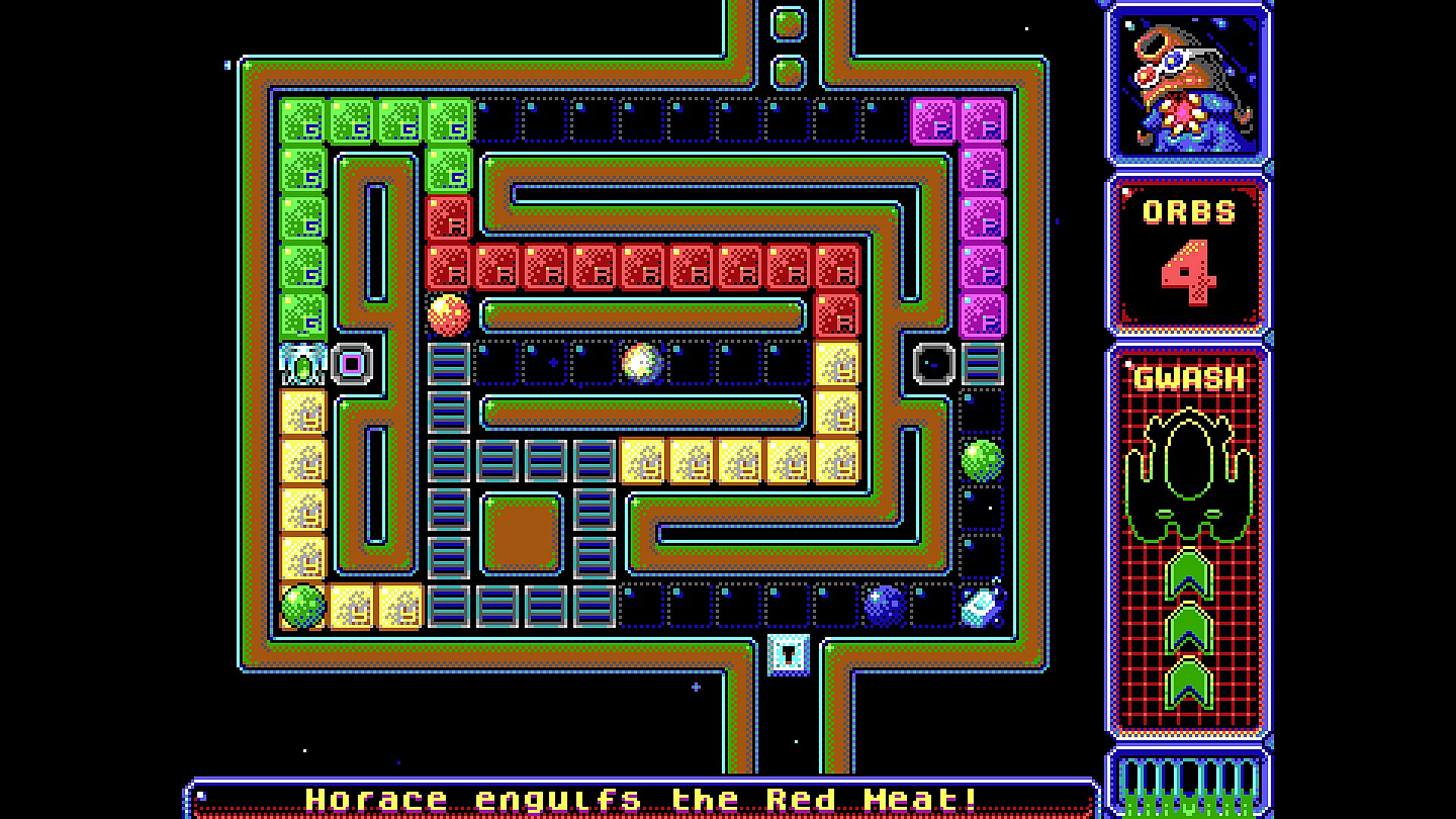 Launch yourself into a puzzle-filled labyrinth as Horace Hagfish, the slime-producing meat lover tasked with restoring cosmic colors. Eat colorful meat to produce colorized slime trails, then blend hues by crossing those paths to shift shades and gather chromatic orbs that open the exit. Avoid mixing into brown, or face instant failure for you and the universe. This casual PC puzzle game packs 50 challenging levels with fresh puzzle mechanics and glorious 16-color EGA graphics. A progressive hint system helps when puzzles stump you. Puzzle fans who relish color-mixing brainteasers will find their match here.