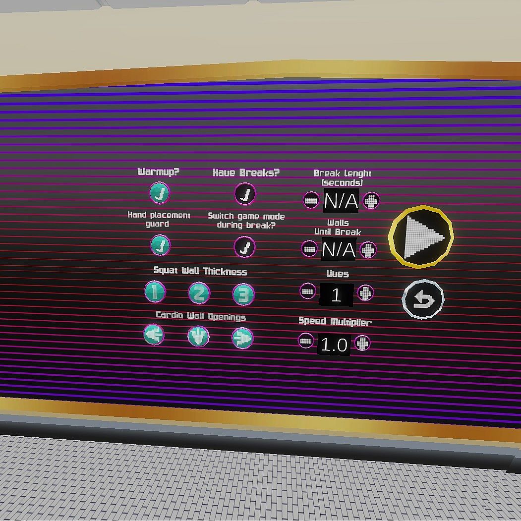 • Custom Routine - Customize your workout experience to best fit you. Modify things like wall speed, wall height, wall thickness, and much more