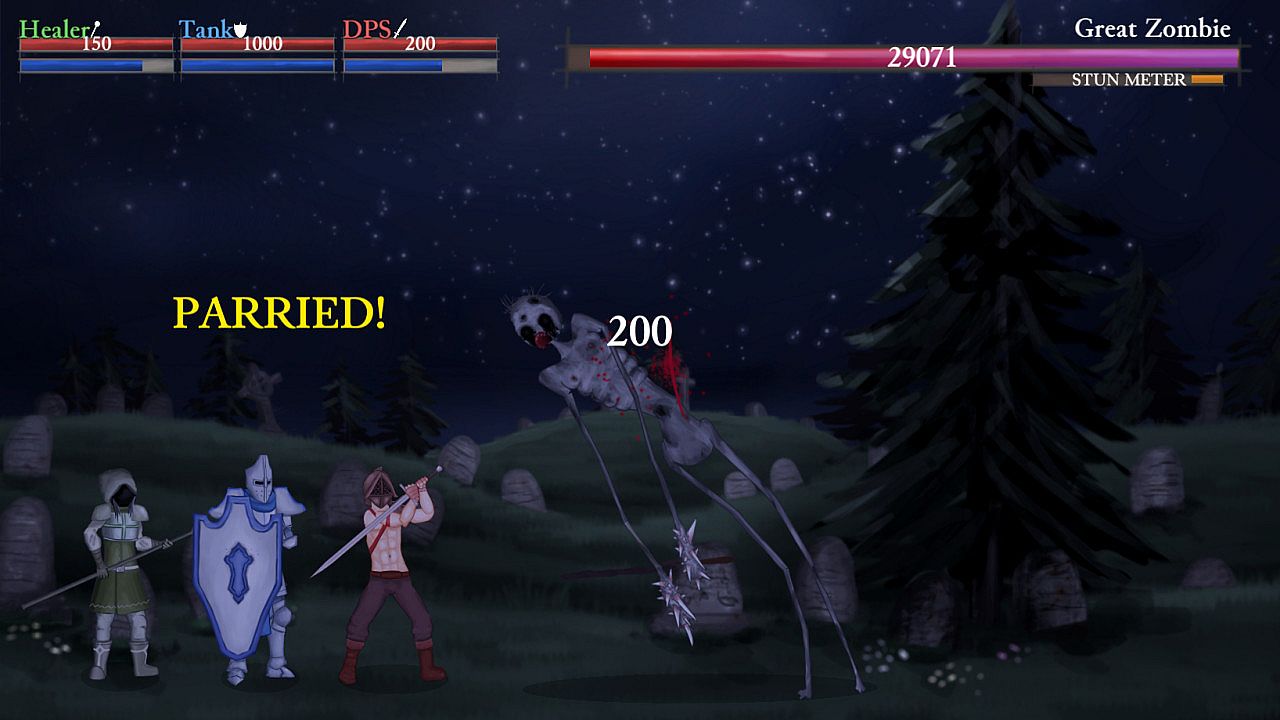 Each party member must be mastered and utilized to their full potential in order to overcome the myriad brutal foes in HTD. Rapidly cycle through party members, parry and interrupt enemy attacks, weave in healing and repairs, and stun your enemy long enough for the DPS to charge a fatal blow, all while weathering the onslaught of your hellish adversary.