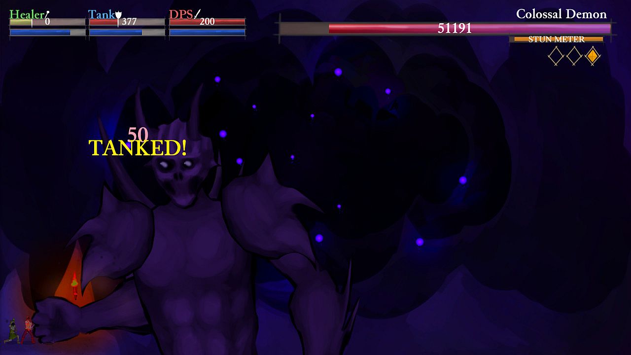 HTD is a mix of classic party-based RPG and fast-paced, real-time action. Take control of a party consisting of a healer, tank, and damage dealer, each of whom excel to an extreme level in their specific role, but fall short in others.