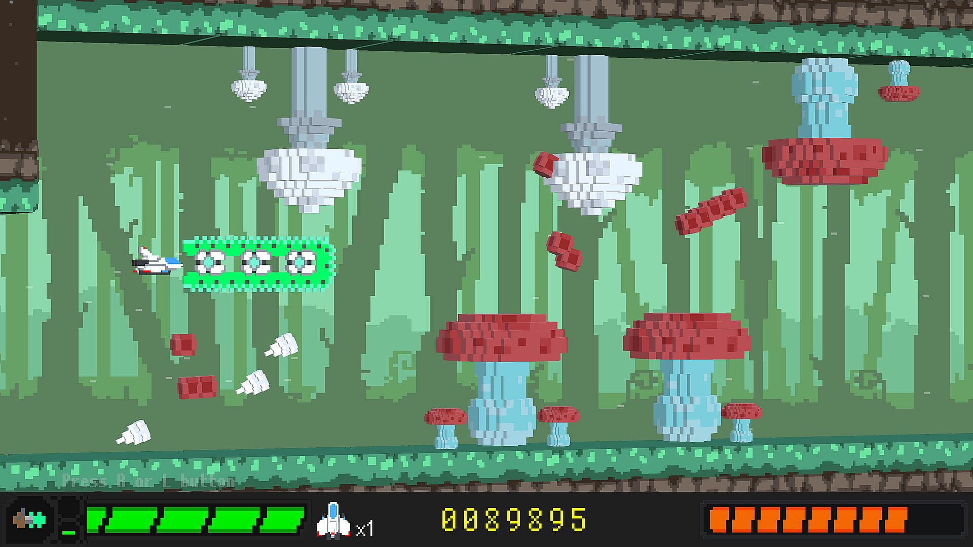 A 2D side-scrolling shooter in which you advance by defeating enemies in a world where everything is made of voxels. Defeat enemies, collect reinforcement items, and take on powerful enemies that appear one after another!