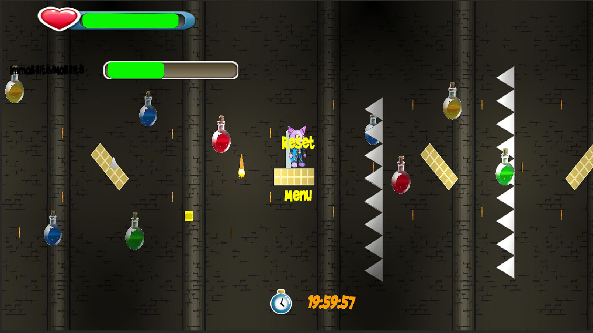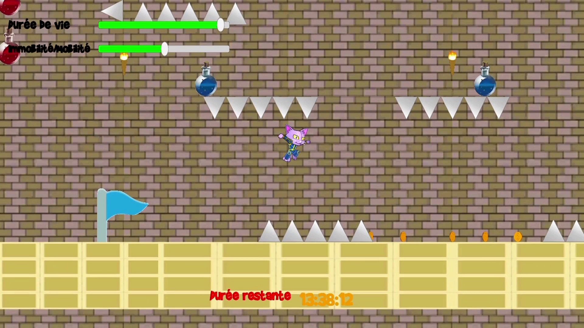 Unlike most other platform games which are more of the action platform genre or not difficult enough , in this game you control so vulnerable character without any power or protection abilities, or a scratch of an obstacle or trap or enemy means immediate failure.