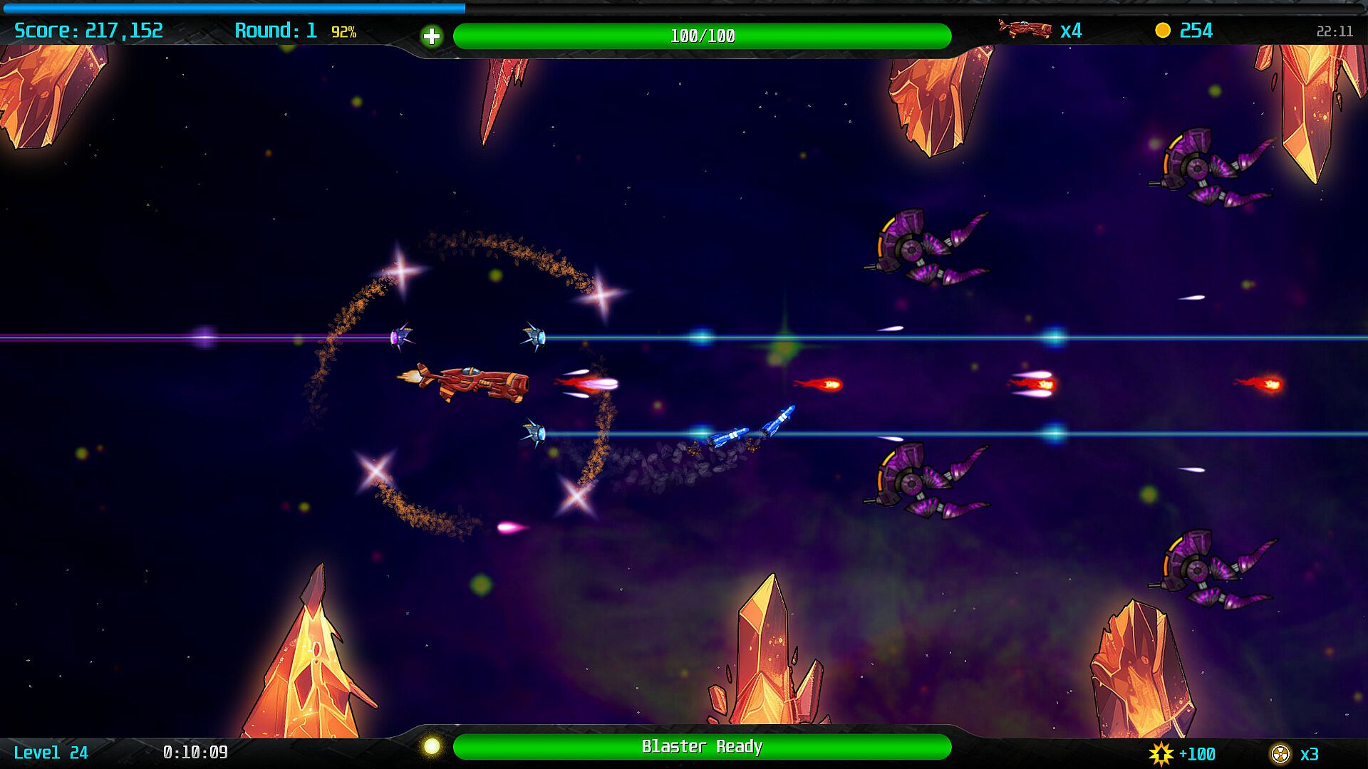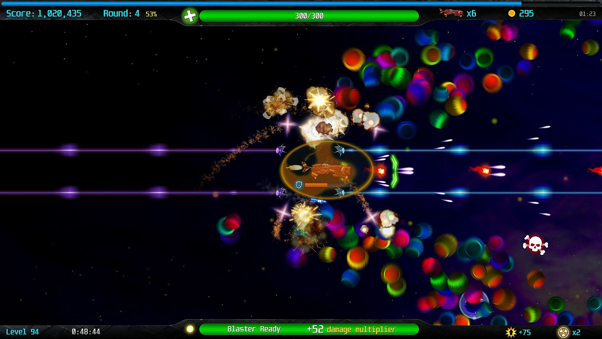 But the battle never ends in Infinity Blaster. Every time you defeat the last boss, the game starts over with enemies that are even harder to kill than before.