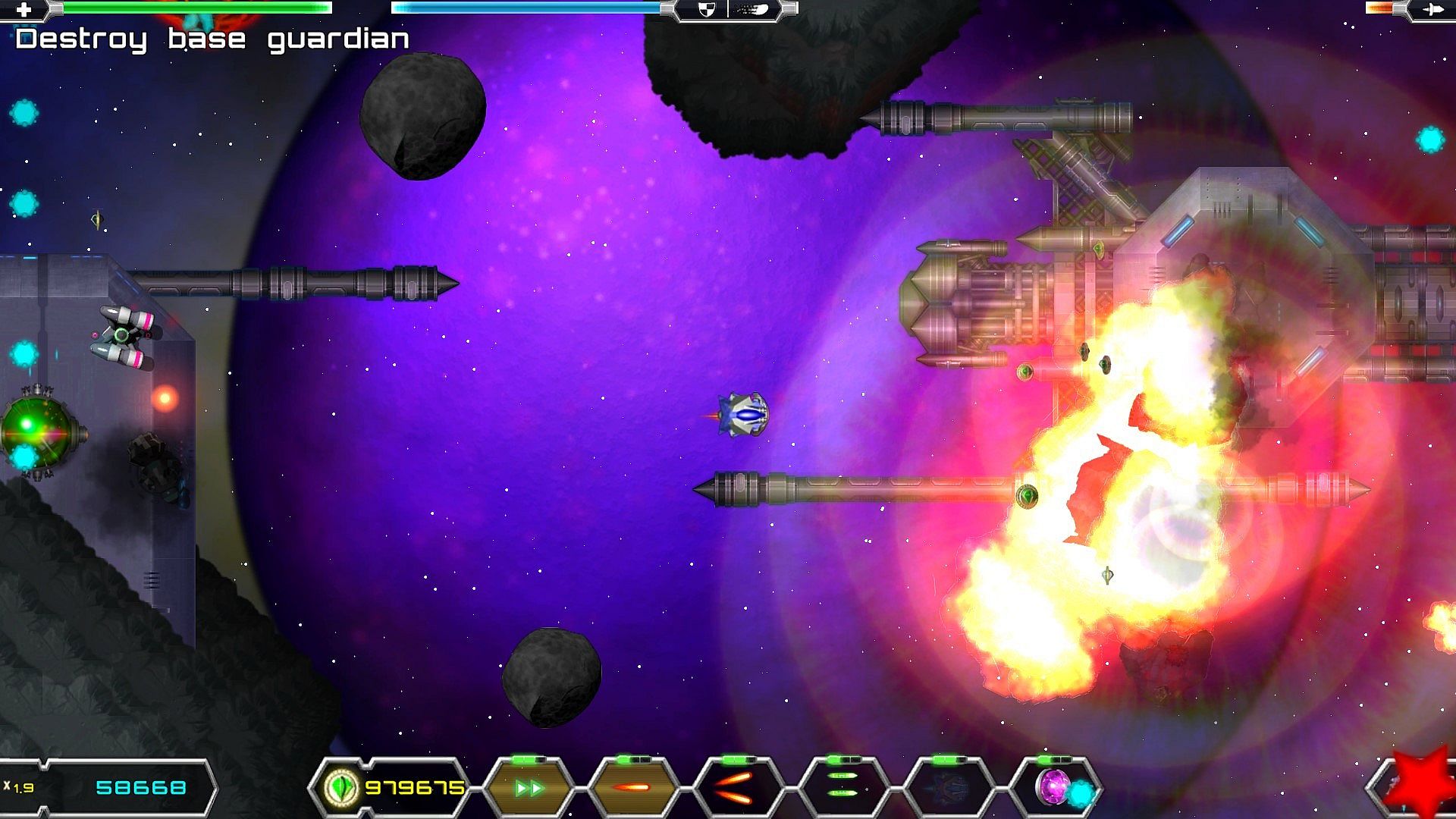 • Destroyable multi part enemy ships up to 5 times the size of the screen
