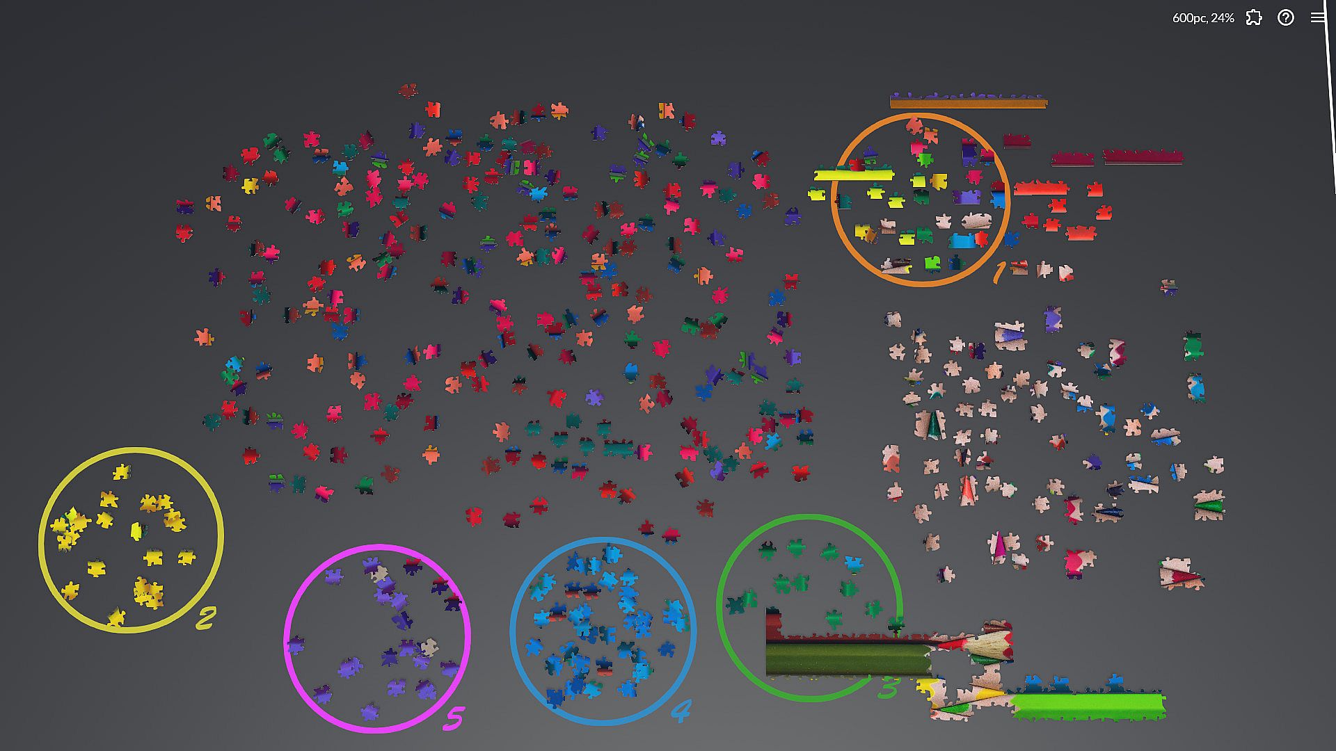 - Convenient sorting piles let you quickly organize pieces by color or shape or however you like