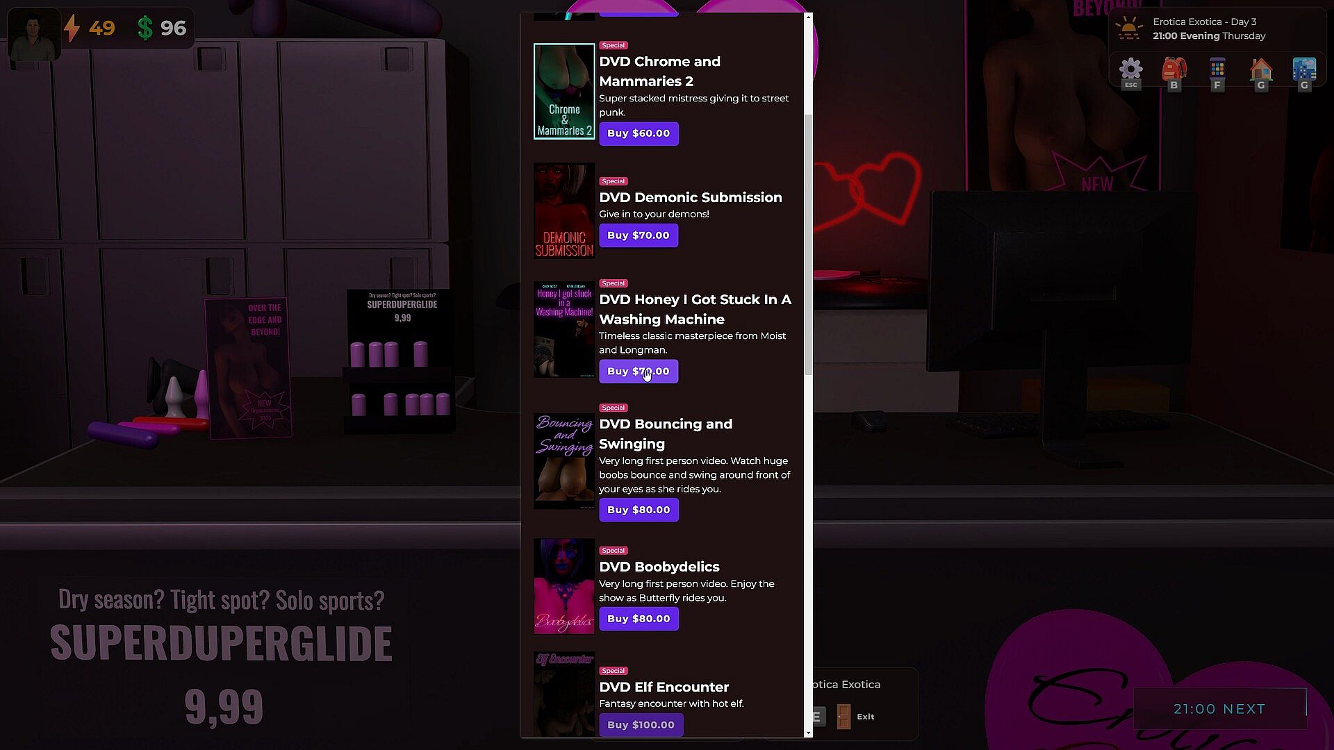 Earn money through photography, growing, harvesting, and crafting at your home. You can spend money on luxuries, advance in storylines, or even buy erotic videos.