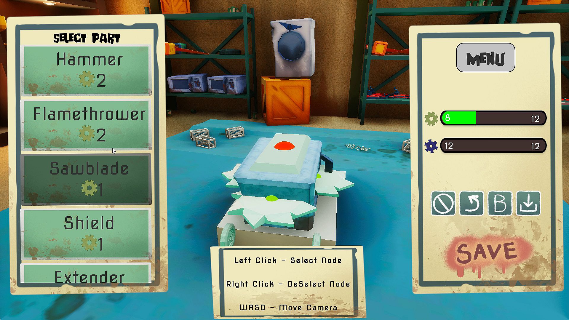 - Utilize various pieces of junk to create crazy robotic creations to use in online play!
