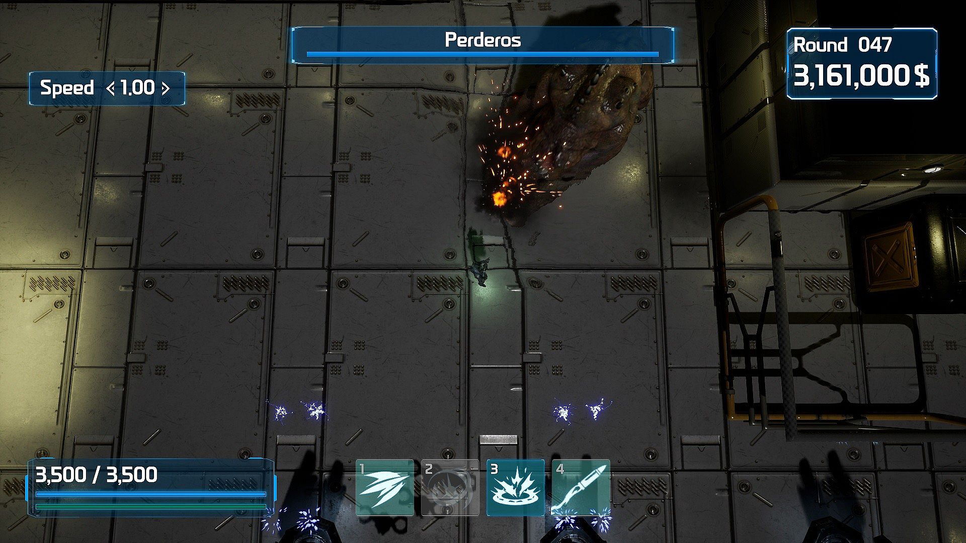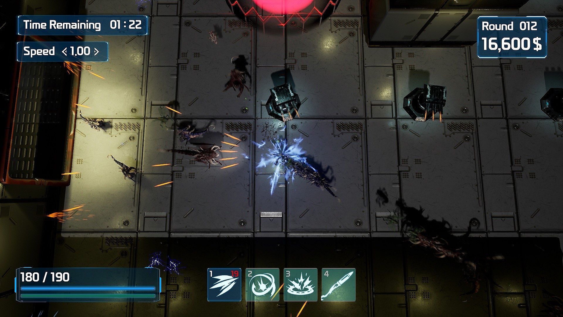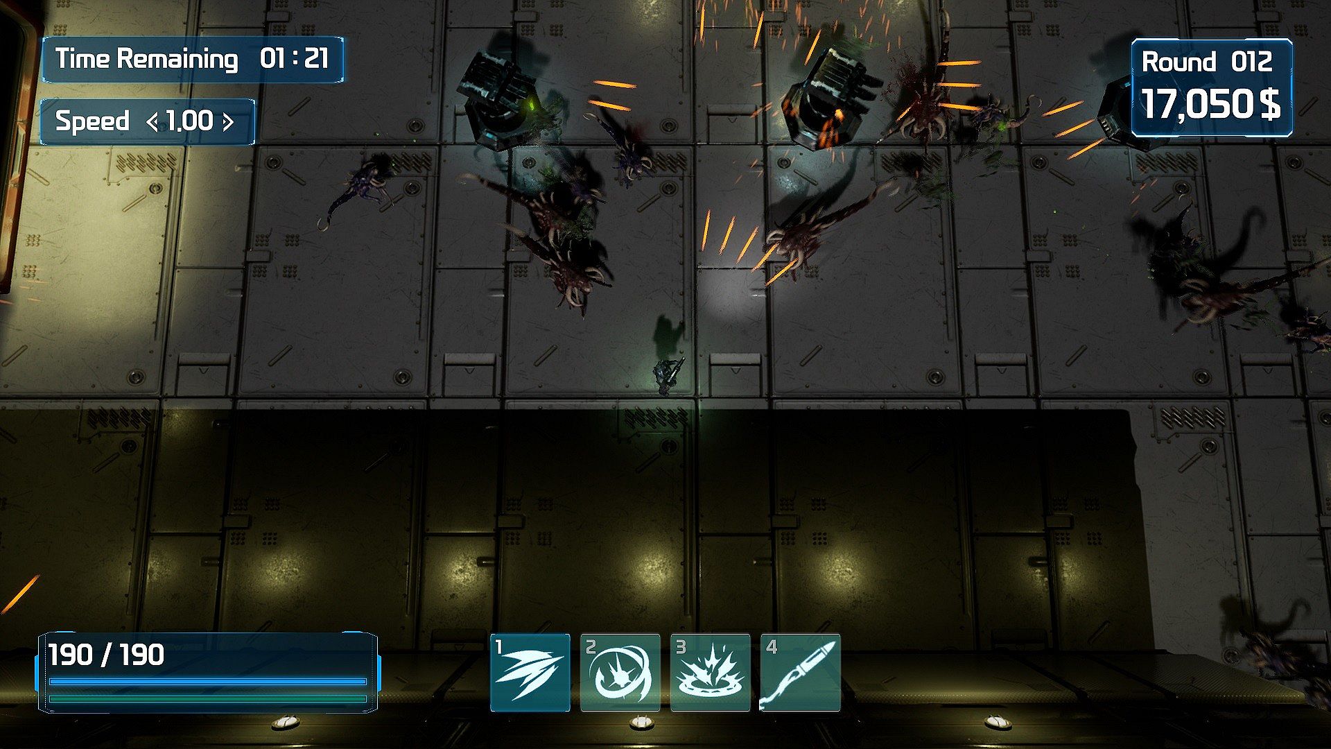 You can upgrade weapons, build turrets and use skills.