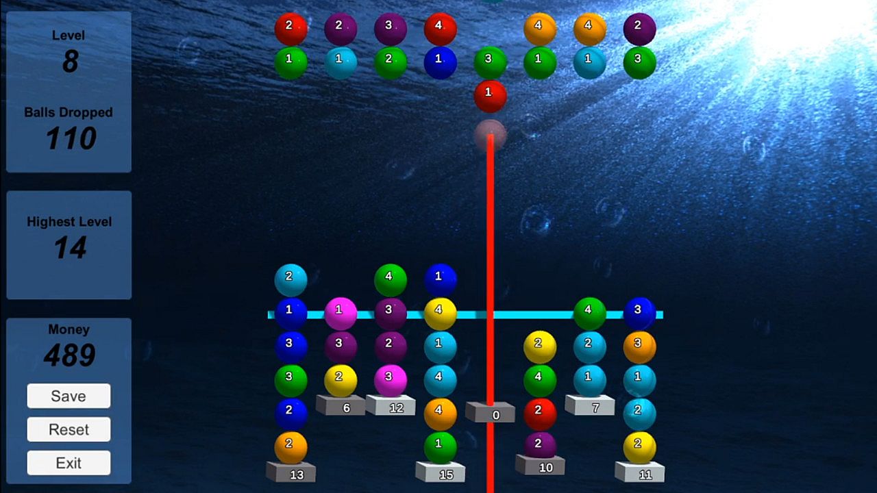Drop weighted coloured balls onto scales, matching three or more balls horizontally in order to score points. But be careful, as the scales adjust to the weight on them, they can tip changing the field to your advantage, detriment or worse - a game over : when the piles of balls become too high they collapse, ending the game.