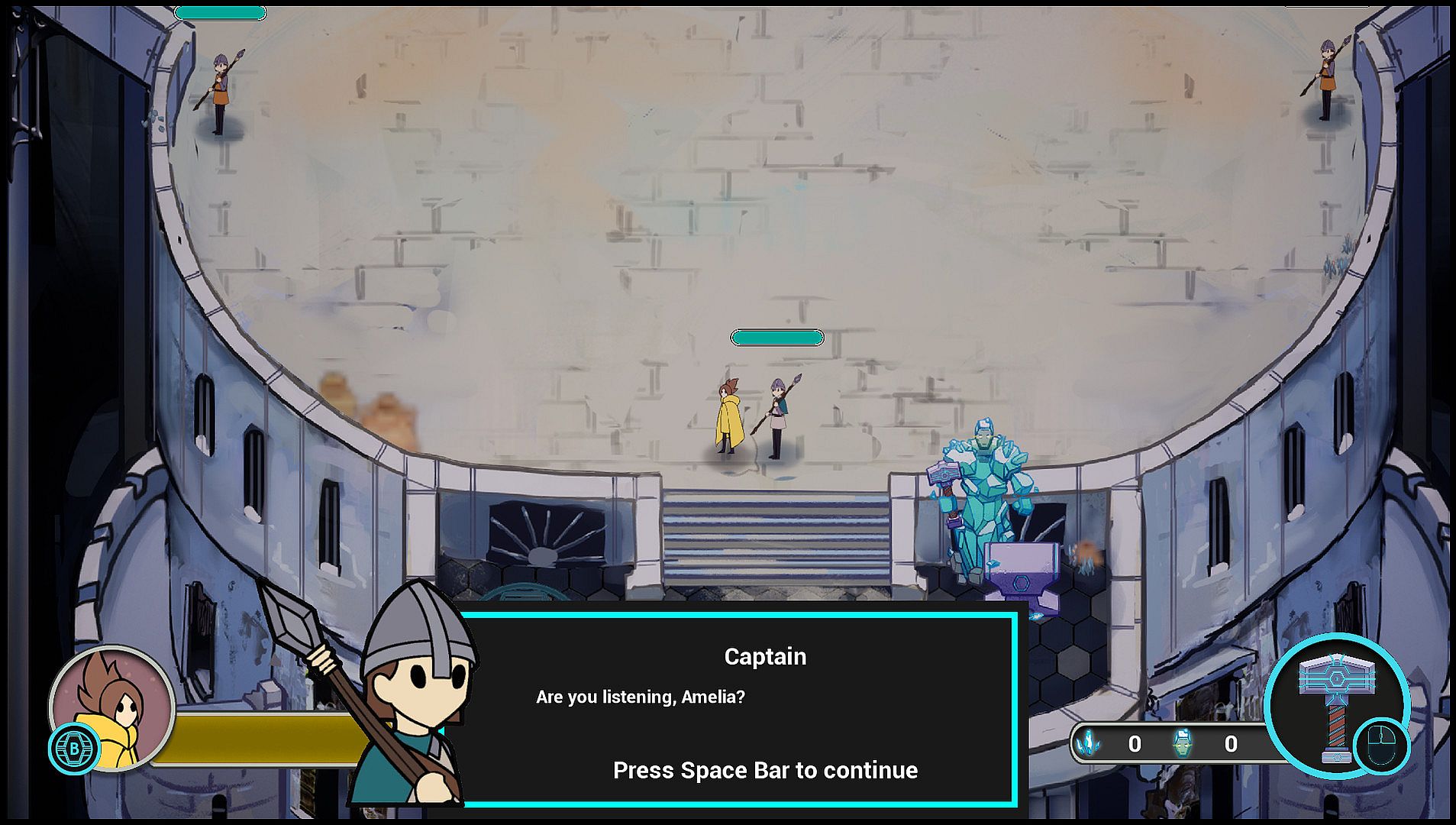 Each of the modes depict the games narrative in different ways, from fully voiceacted narration and conversation, text-based dialouges, to pure ludo-narrative. Each a part in telling the story of Amelia.